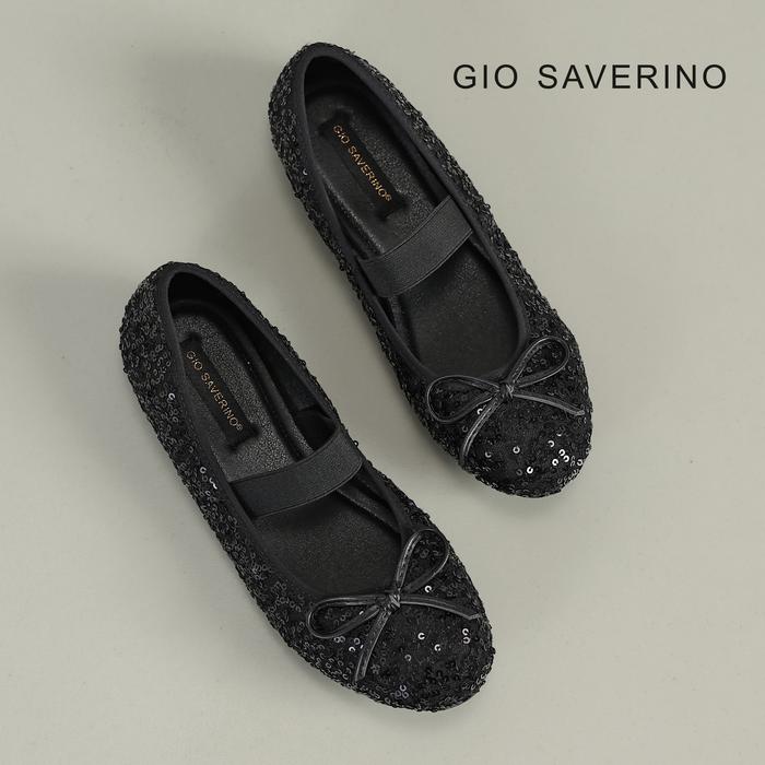 GIO SAVERINO SEPATU FLAT SHOES WANITA CANTIK BALLERINA SHOES PHUKET - PHUKET BLACK, 41