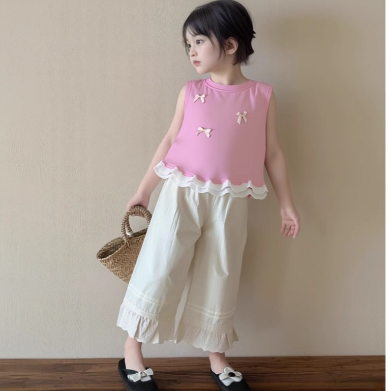 Boboho - Atasan Berlin Top Anak Perempuan Lengan Kutung Renda Atasan Anak Perempuan