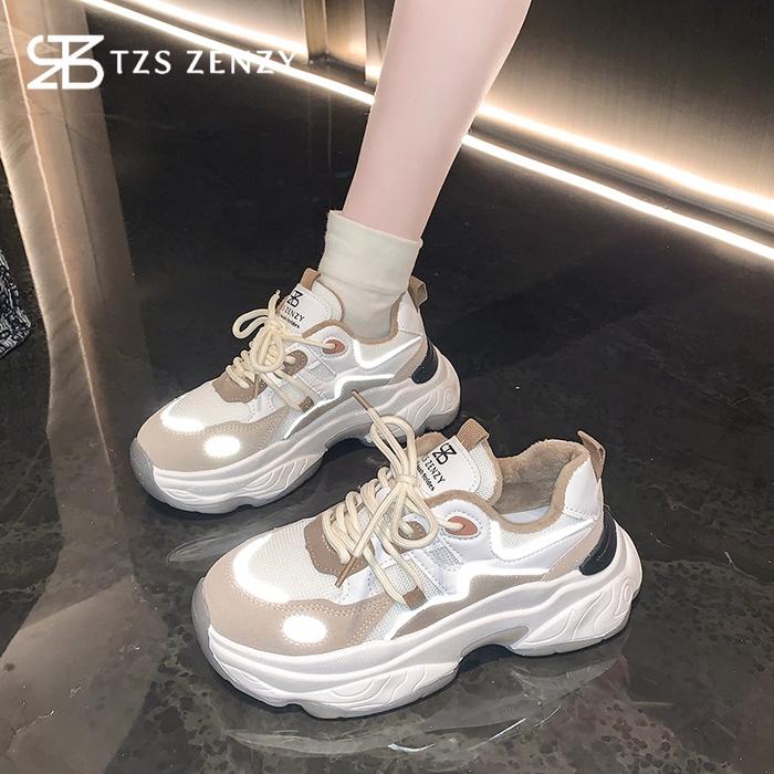 TZS ZENZY NOAH STRIDE SNEAKERS - SEPATU SNEAKERS WANITA - SEPATU CEWEK - SNEAKERS CEWEK - DAD SHOES ROUND TOE CASUAL SPORT OLAHRAGA - LIGHT CREAM, SIZE 35