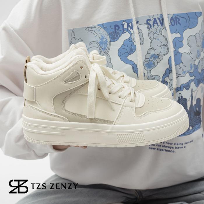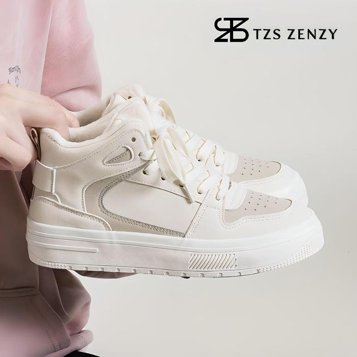 TZS ZENZY PREMIUM JAEHYUN KOREA DESIGN - SEPATU SNEAKERS MODIS WANITA - SEPATU HIGH CEWEK CASUAL KARET SHOES BLACK - WHITE CREAM, SIZE 35