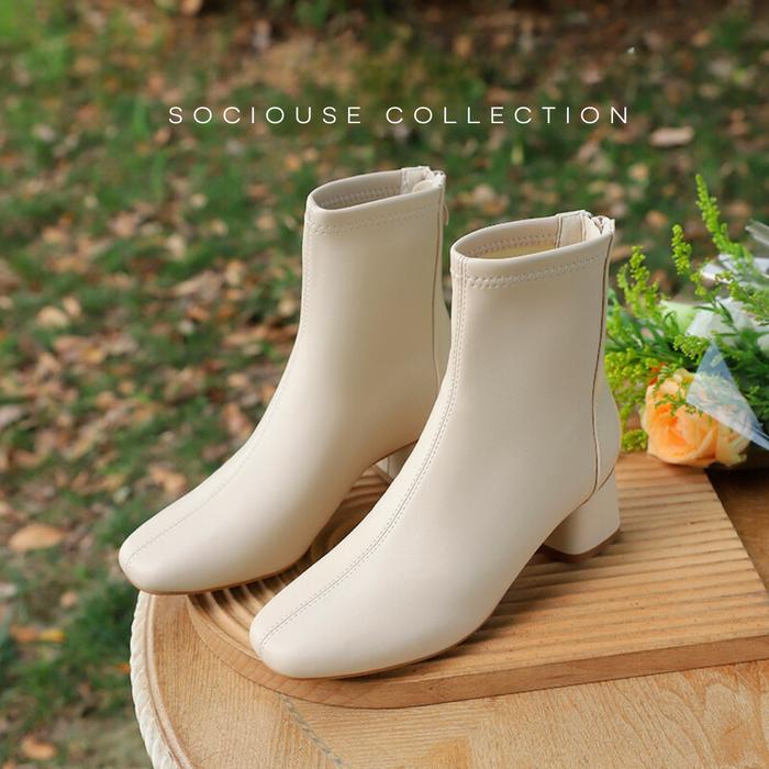 SEPATU ANKLE BOOTS WANITA - BOOT WANITA KOREA PREMIUM - BEIGE, 36