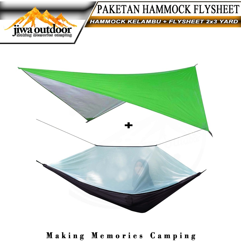Paketan Hammock Kelambu + Flysheet Tenda Waterproof 2X3 Yard Paket Hemat Hammock Flysheet Camping