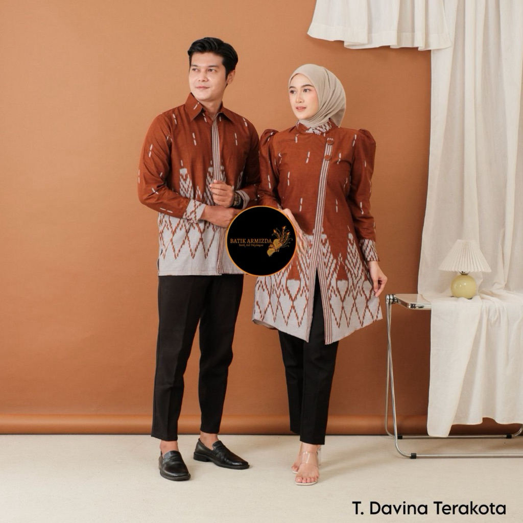 Atasan Batik Couple Tunik Wanita Modern Batik Pasangan Keluarga Motif Davina