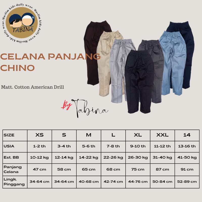Celana Panjang Anak Model Chino Bahan Katun Drill Usia 1 Hingga 16 Tahun Remaja