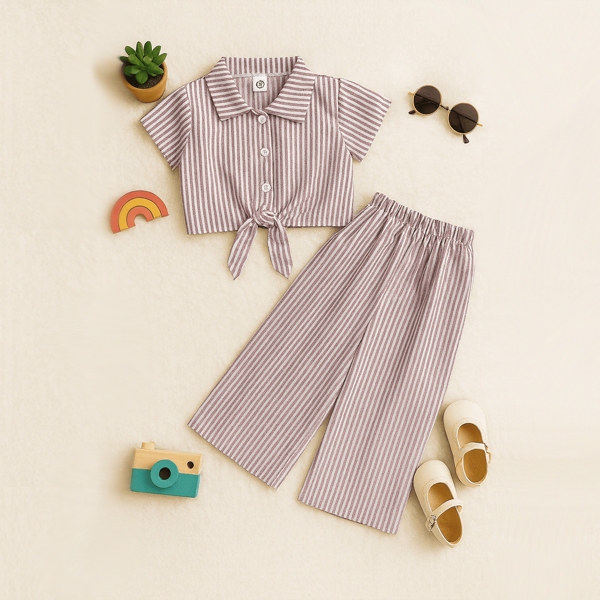 Miniku - One Set Kemeja Anak Korean Style Setelan Anak Unisex Motif Salur Usia 1 - 8 Tahun Setelan Kemeja Anak Set