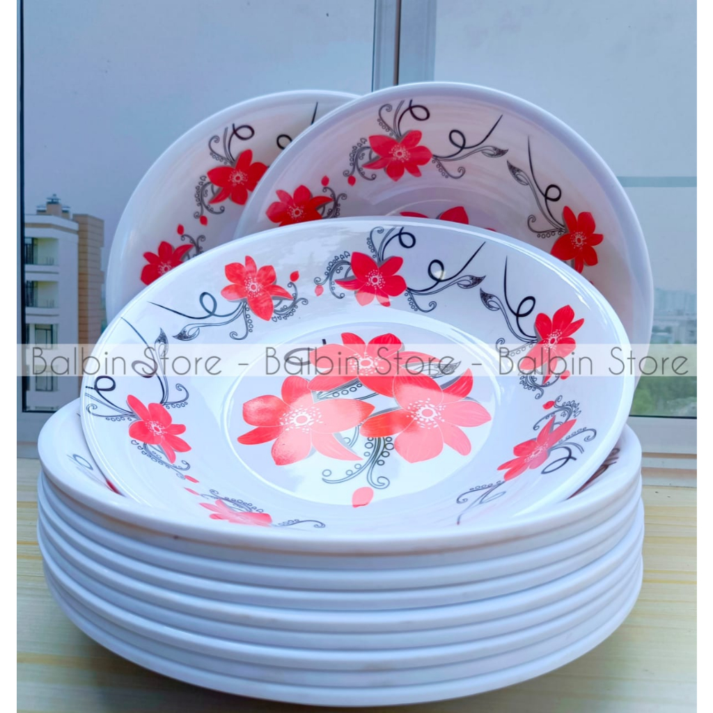 SATU LUSIN PIRING MELAMINE MODEL CEKUNG LEBAR 23CM MOTIF TERBARU | PIRING CANTIK | PIRING MELAMIN