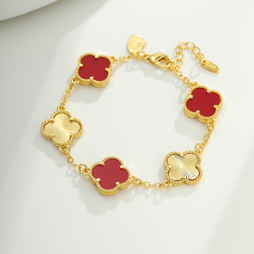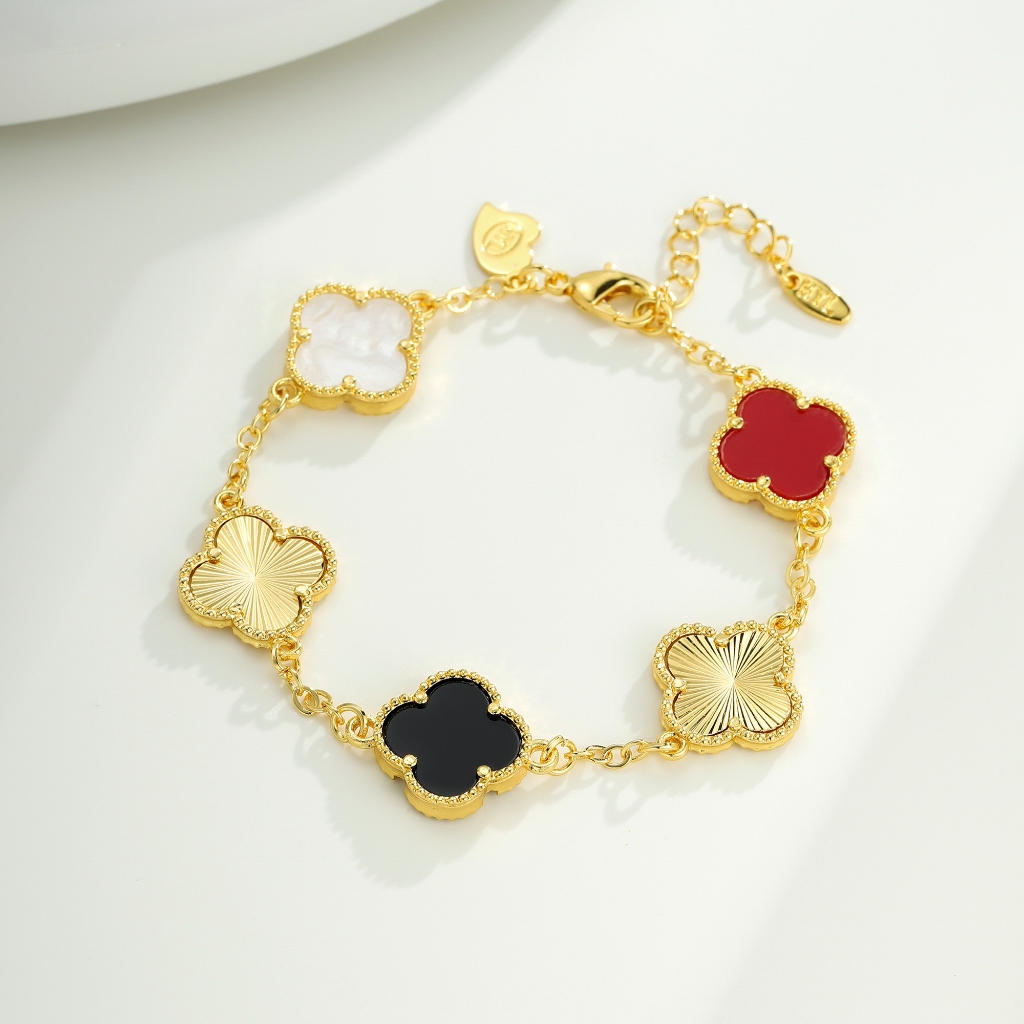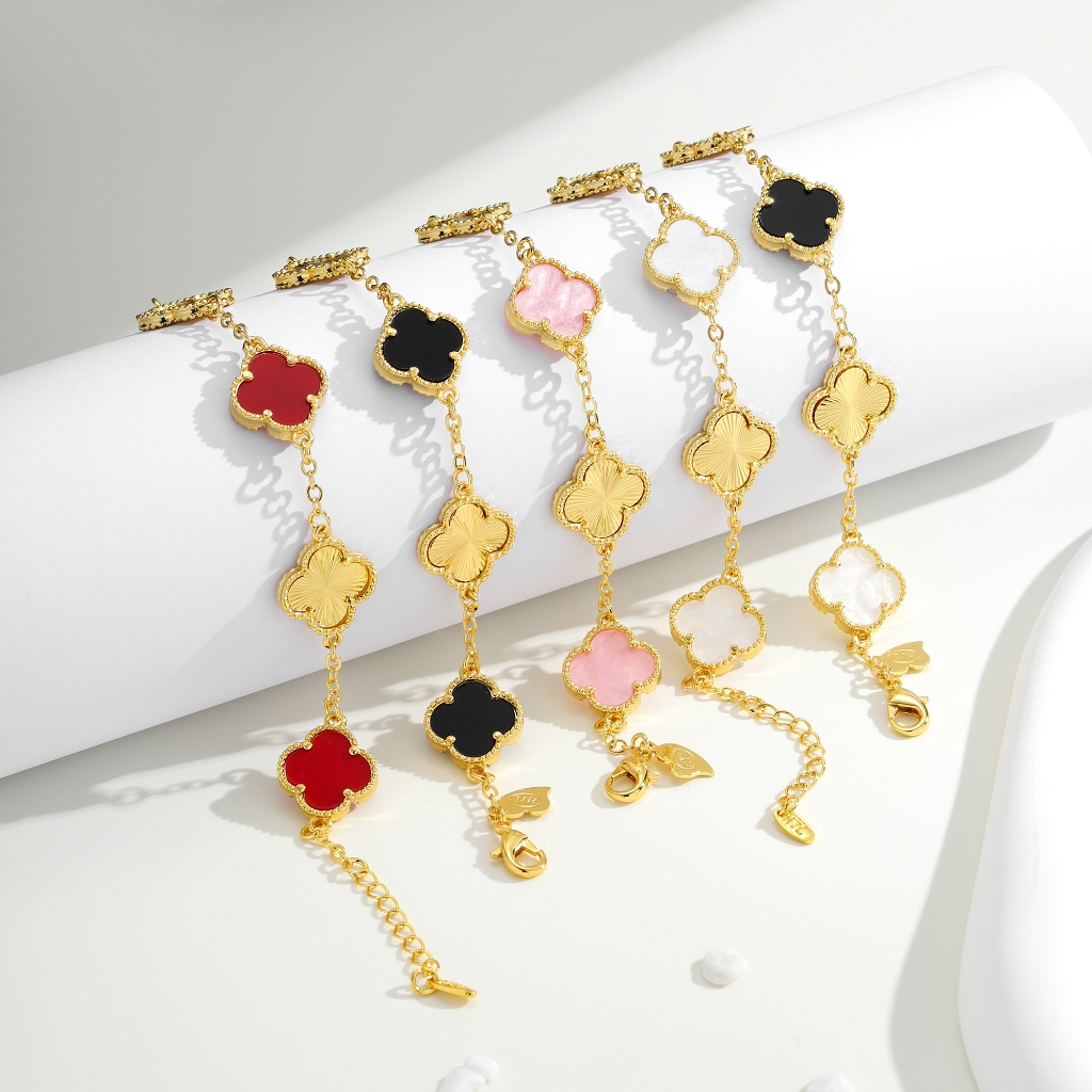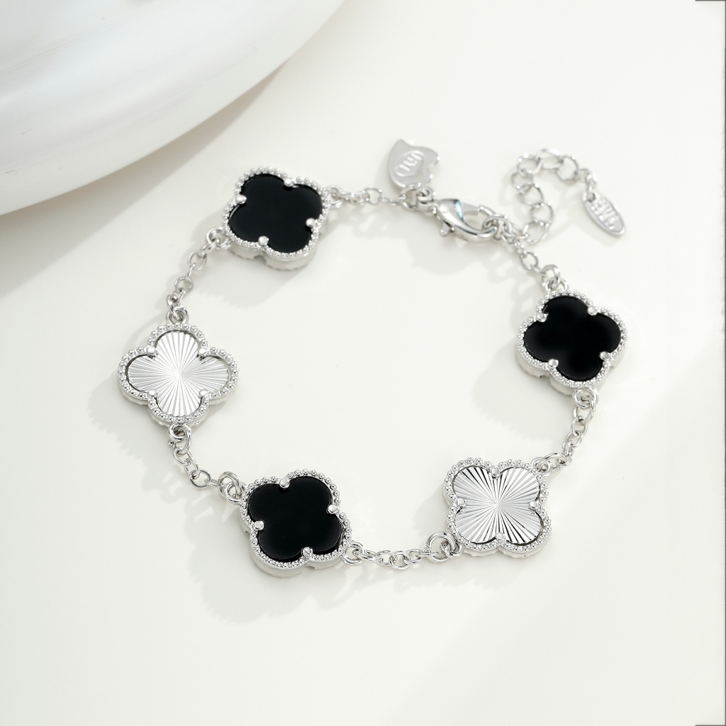 Hyl Jewelry 688B Gelang Titanium Bangle Bracelet Wanita Four Leaf Clover Terbaru Anti Karat Dan Keroncong Lilit Asli Sil