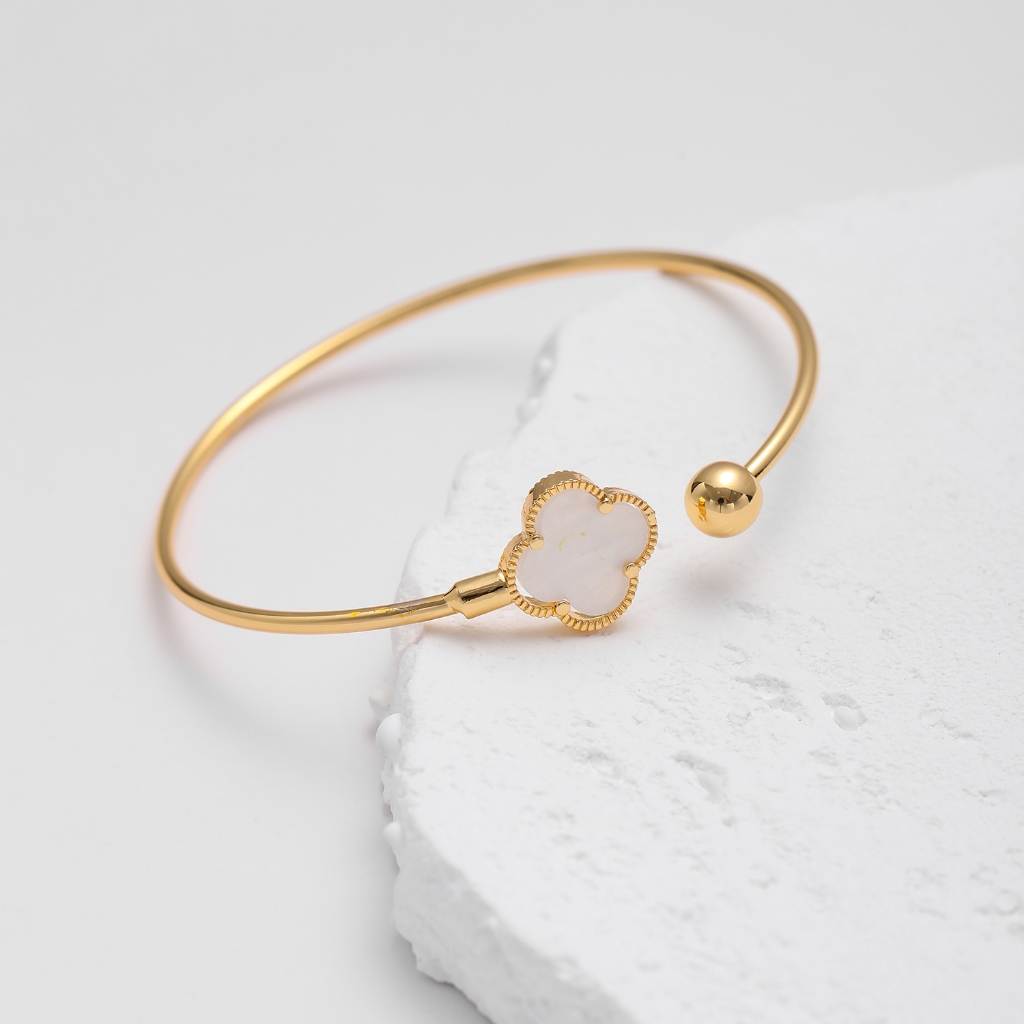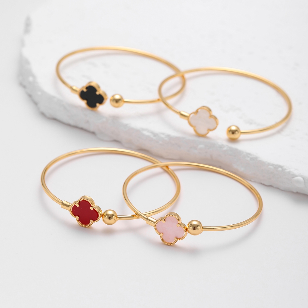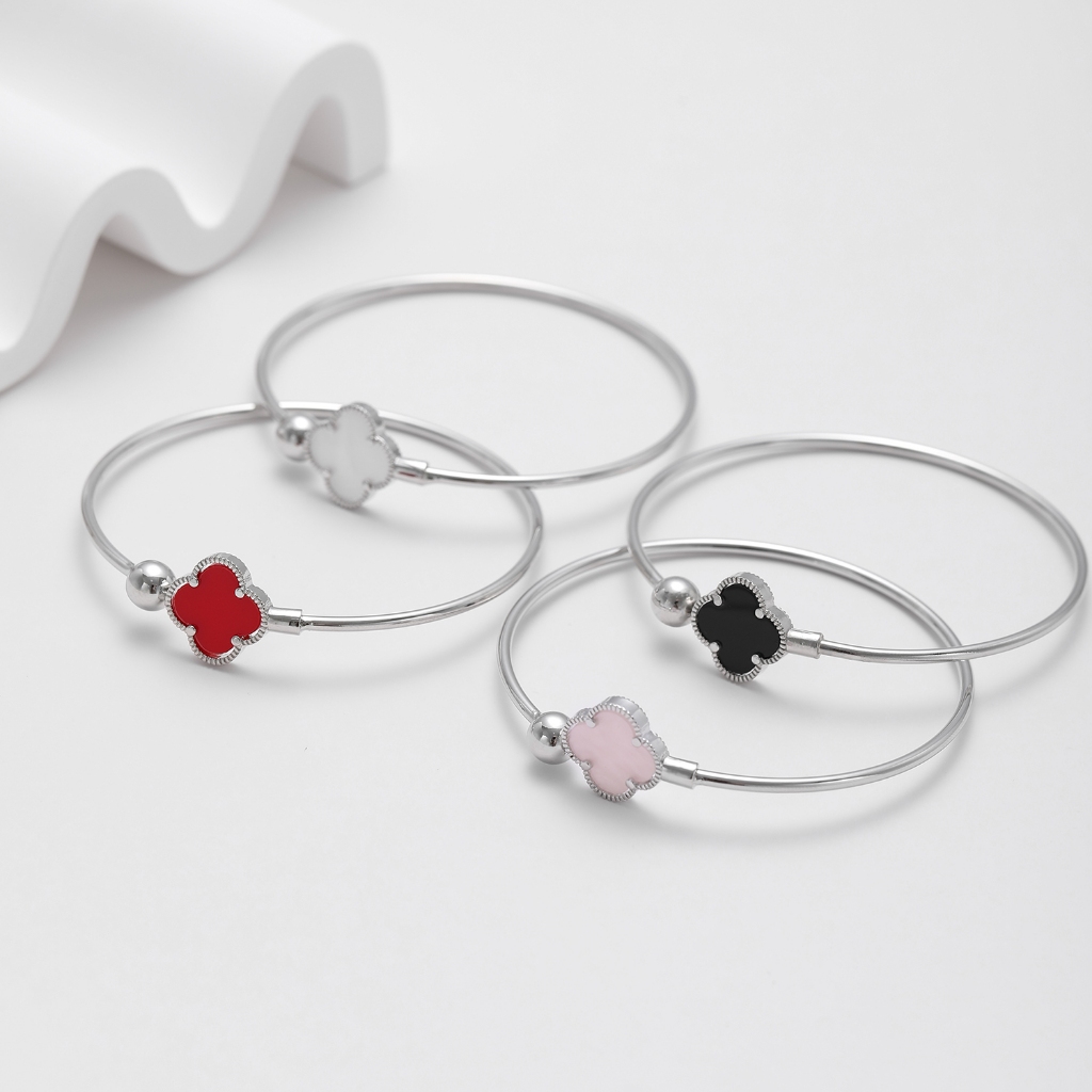 Hyl Jewelry 620B Gelang Titanium Wanita Bangle Bracelet Four Leaf Clover Terbaru Anti Karat Dan Keroncong Lilit Asli Sil
