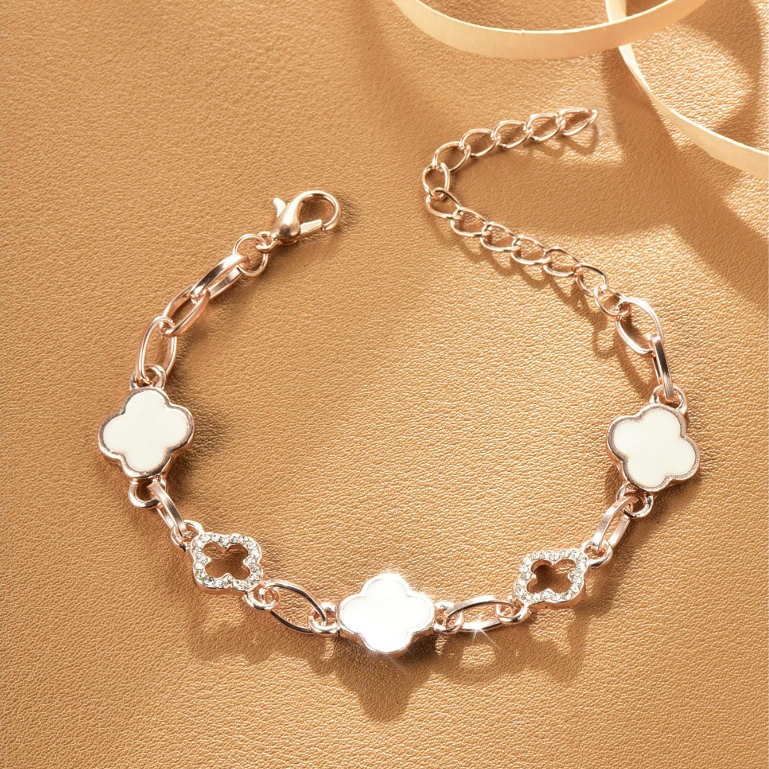 Gelang Titanium Pasangan Gelang Terbaru Gelang Berlian Anti Karat Aksesoris Daun Semanggi Empat