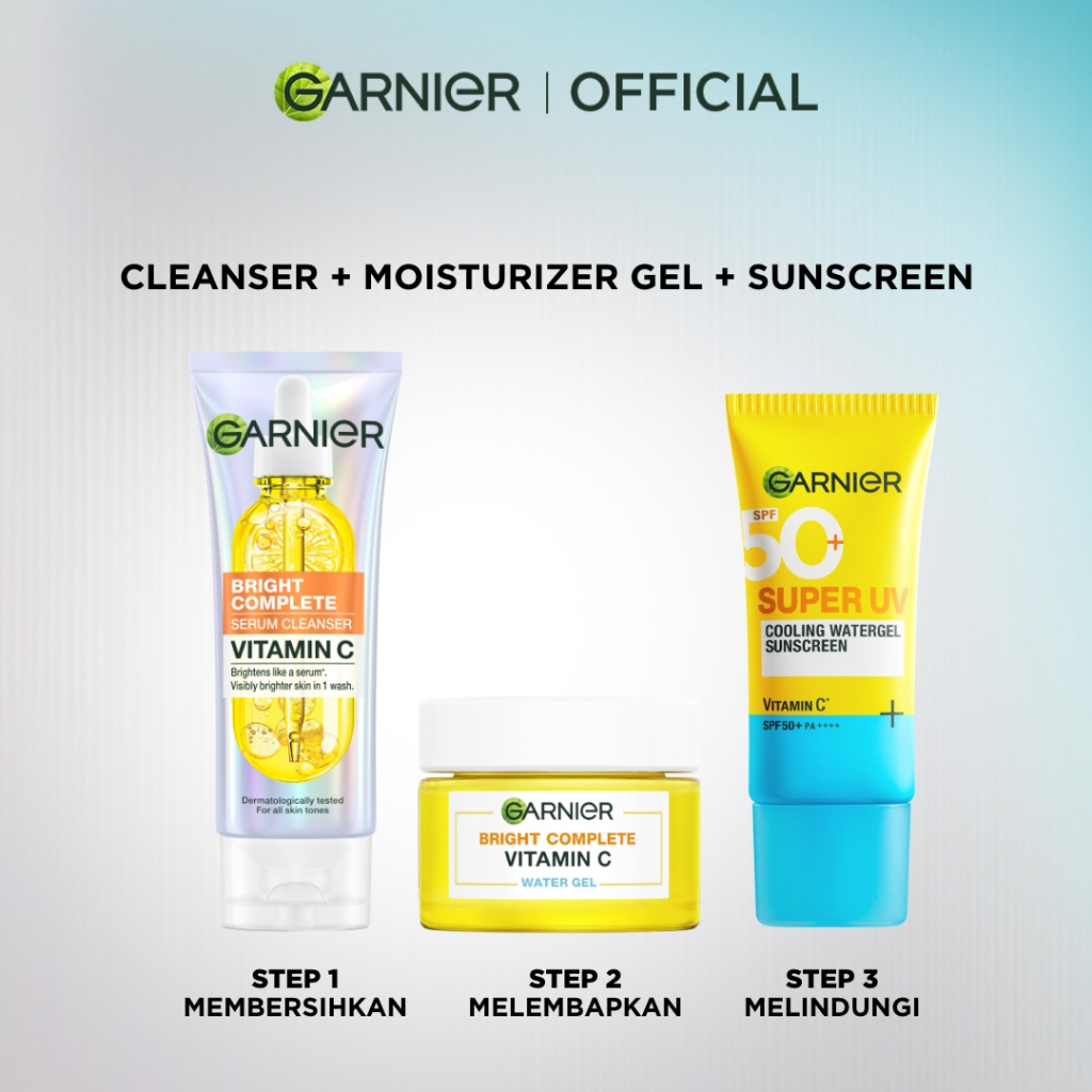 GARNIER Paket Skincare Set 2pc 3pc 5pc | Paket Hemat Super UV Cooling Watergel Sunscreen, Serum Wash Cleanser Moisturize