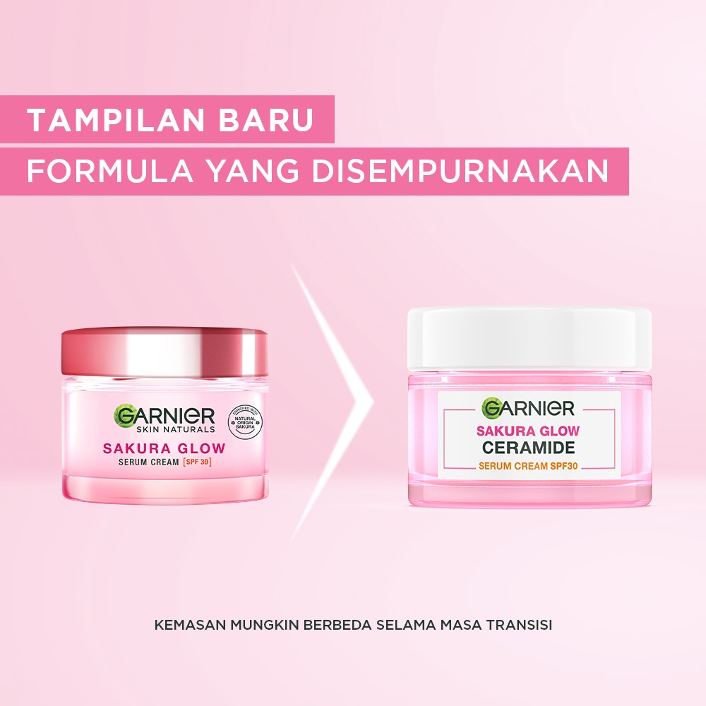 GARNIER Sakura Glow Ceramide Skin Barier Day Cream Cerah Merona SPF 30 PA +++ 50 ml Hydrating Moisturizer Tone Up Glowin