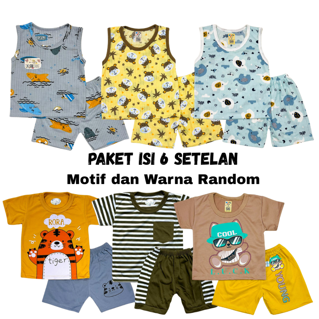 6 Pcs Setelan Anak Laki Laki Usia 0-2 Tahun Sni Setelan Oblong Baju Baby Gracia