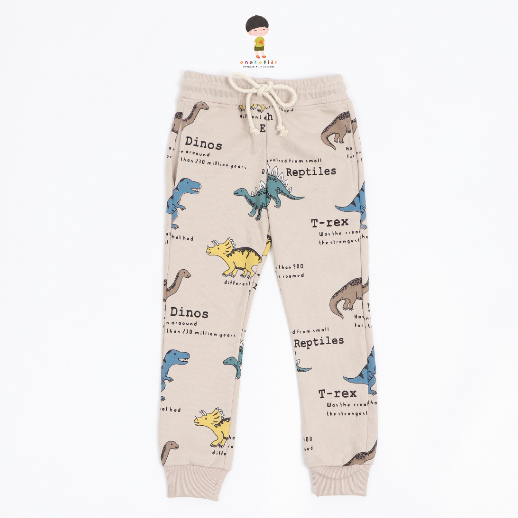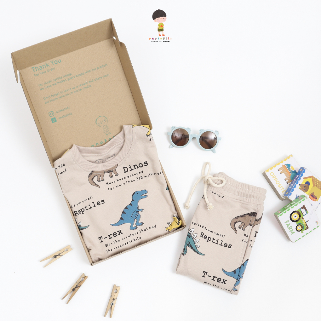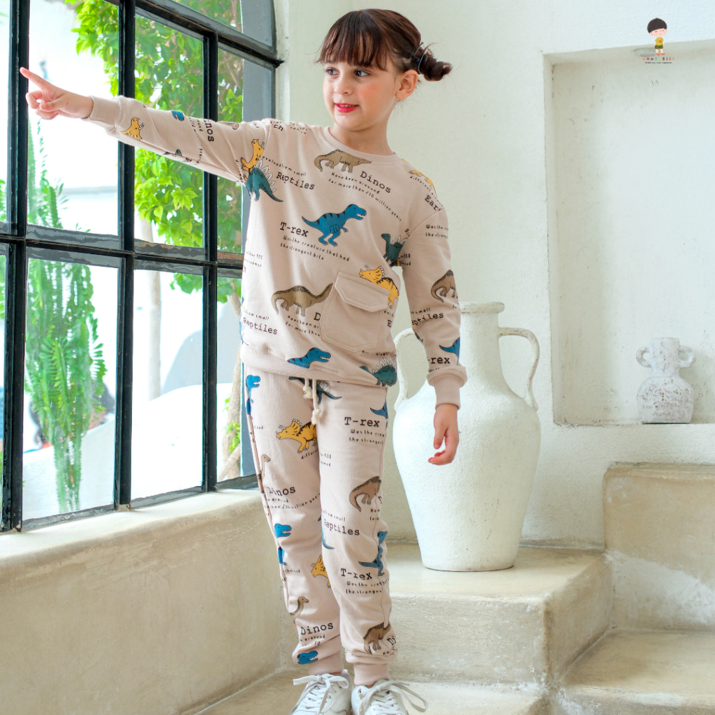 Anakakidz Sweater Crewneck Jogger Anak Set Fullprint Dino Light Brown | Setelan Anak Unisex 1 - 10 Tahun
