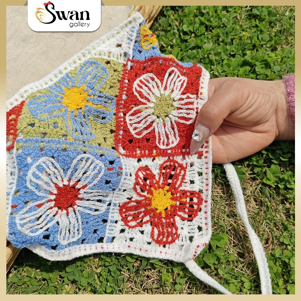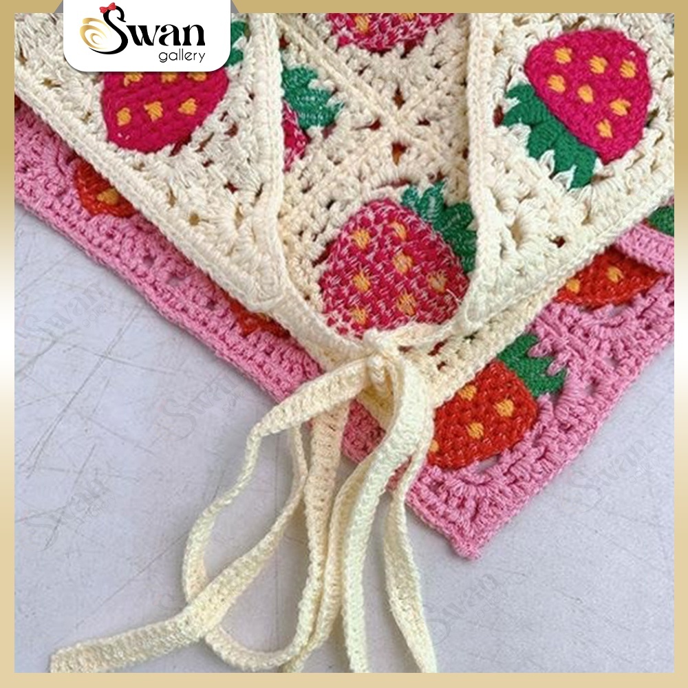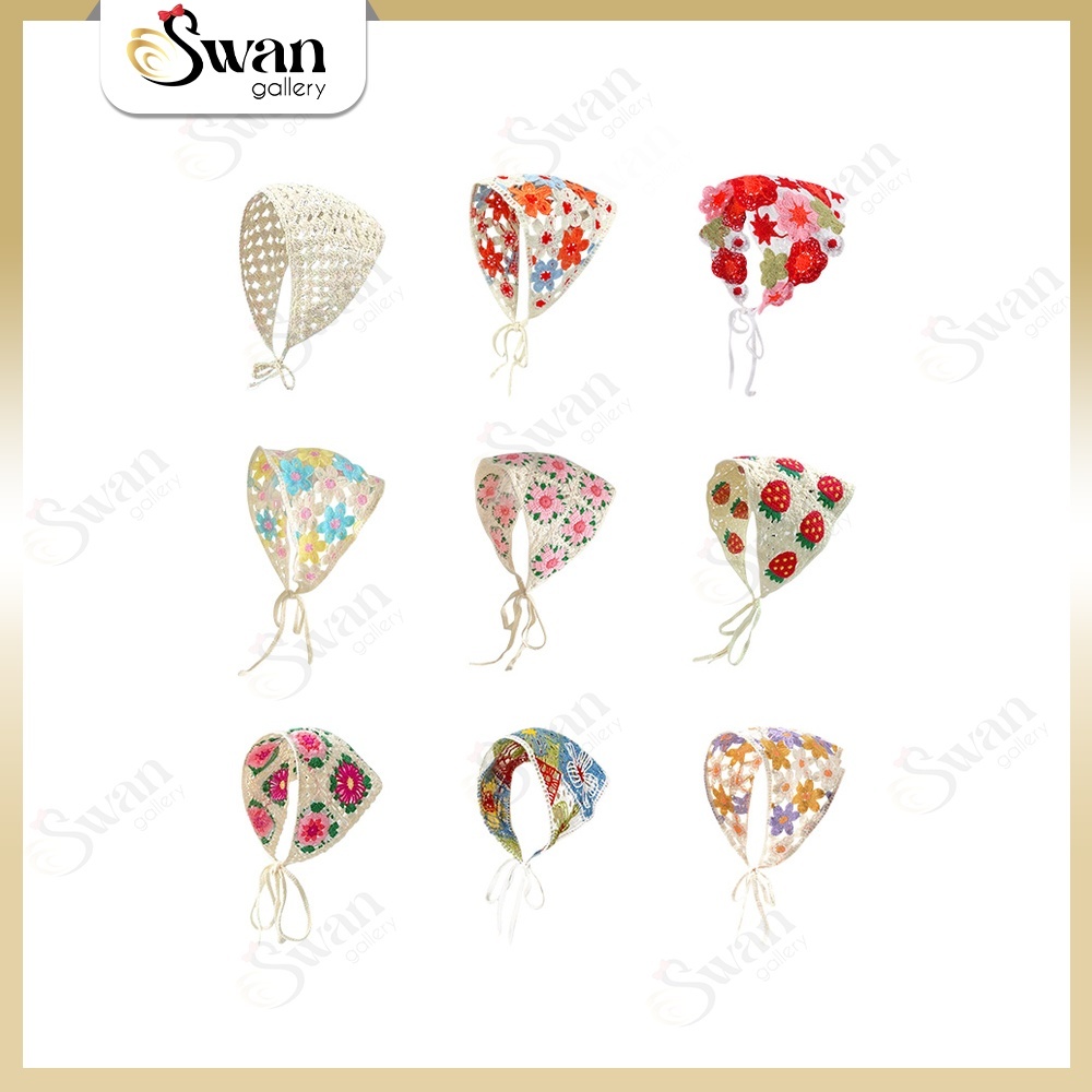 Bando Syal Segitiga Gaya Korea Aesthetic Bandana Rajut Wanita Premium Piknik Lace Cottage Head Scarf Triangle Hair Acces