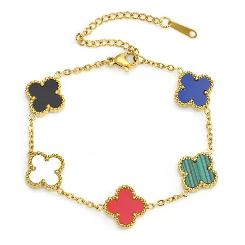 Hyl Jewelry 693B Wanita Gelang Titanium Bangle Bracelet Four Leaf Clover Terbaru Anti Karat Dan Keroncong Lilit Asli Sil