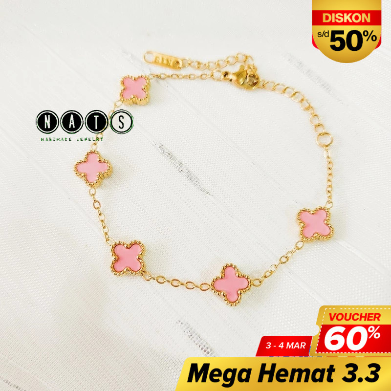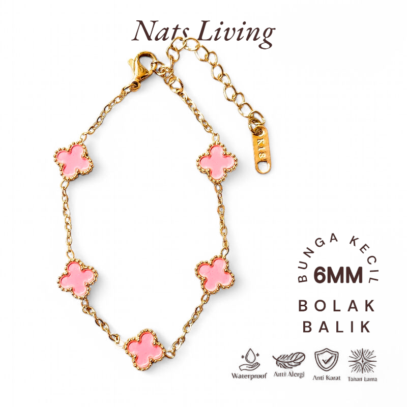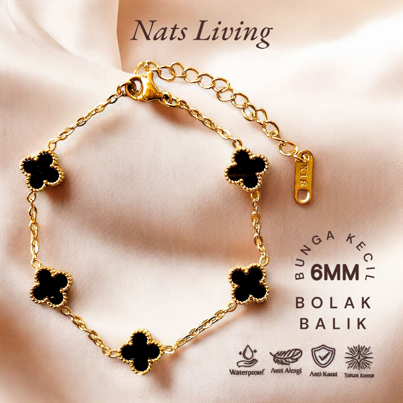Nats Living: Gelang Tangan Clover Titanium Bolak Balik Wanita Anti Karat, Mini Dorothy