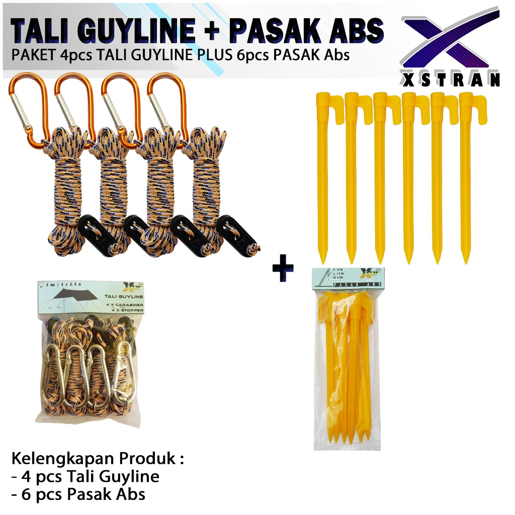Paket Pasak Tenda Abs 6 Pcs Dan Tali Guyline 4 Pcs Serbaguna Camping Outdoor