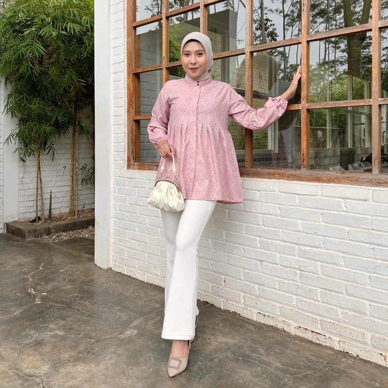 Blouse Batik Kerja Safira Warna Pink Lengan Panjang