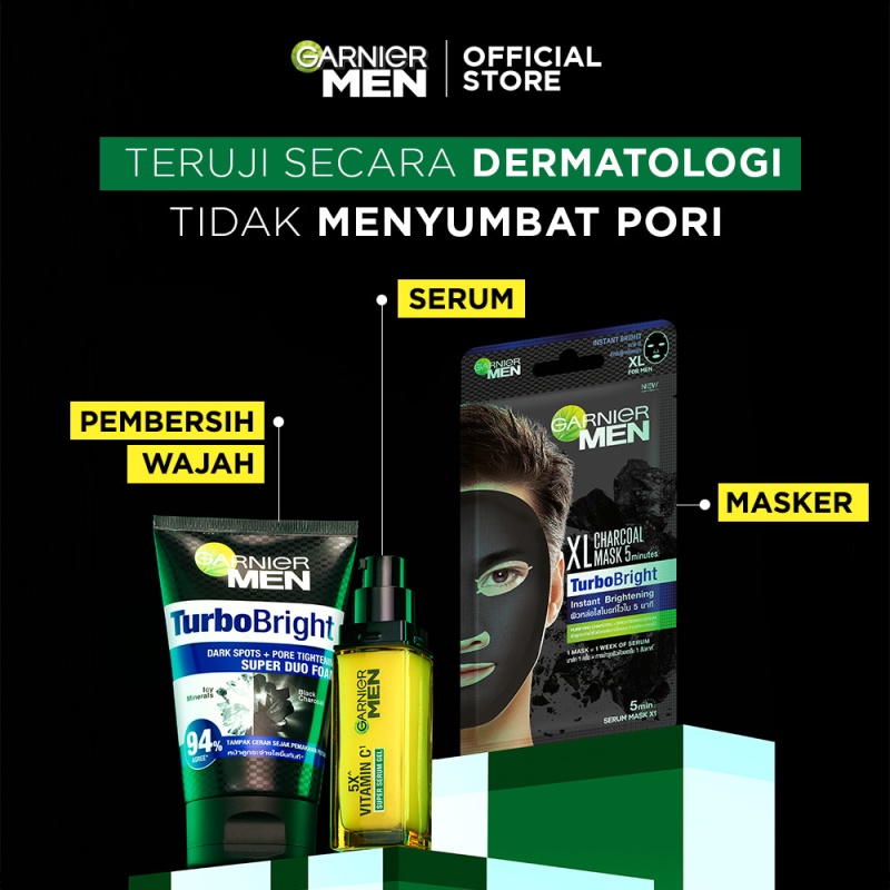 GARNIER Men Turbo Bright 5x Vitamin C Super Serum Gel - 30ml Serum Mencerahkan Wajah Anti Kusam 5x Lebih Cepat