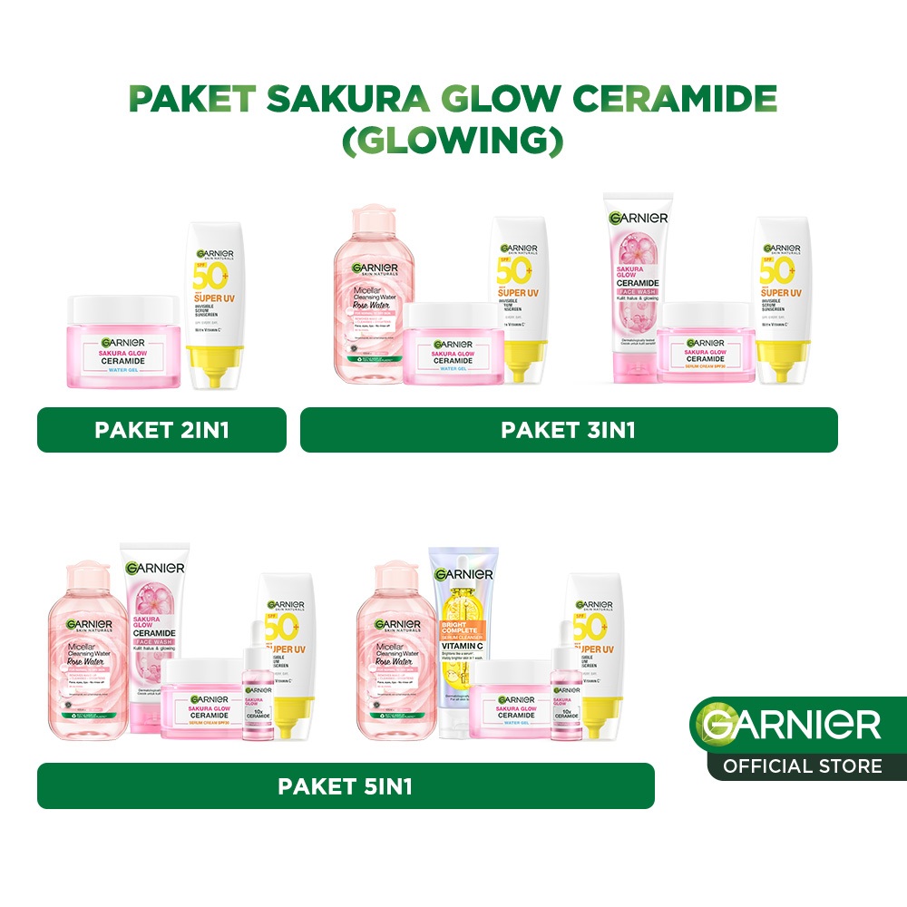 GARNIER Paket Skincare 1 Set Lengkap Sakura Glow Ceramide Skin Barrier 2pcs 3pcs 5pcs| Day Cream Tone Up Mencerahkan Moi