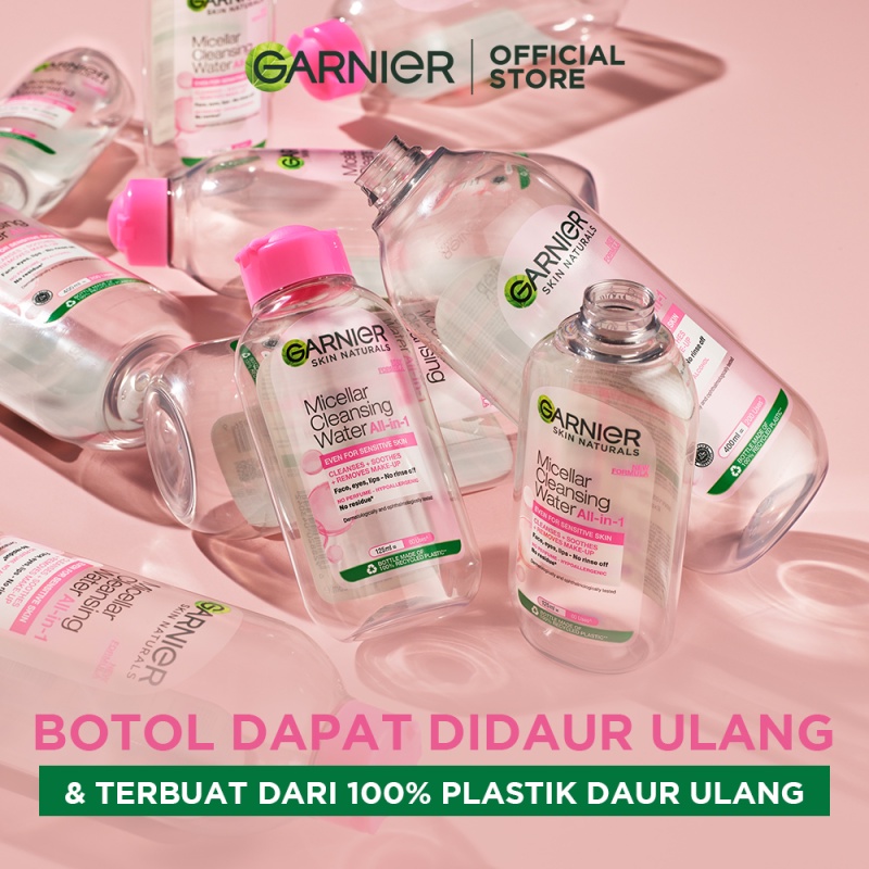 GARNIER Micellar Water Pink Skin Care 125ml Skincare Cleansing - Pembersih Wajah & Make up untuk Kulit Sensitif Micellar