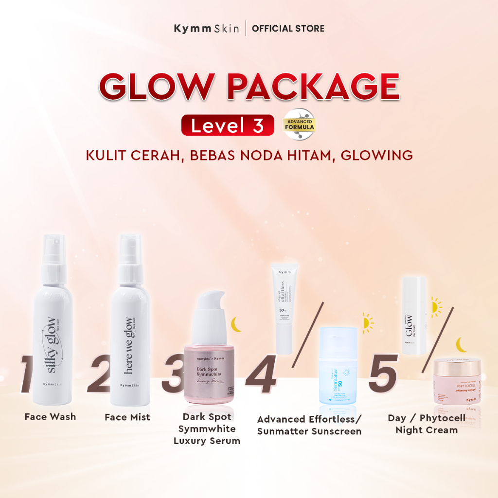 [Free Pouch] KYMM SKIN Glow Package LEVEL 3 with Phytocell Night & Symwhite Serum [FW 60ml, FM 60ml, Day Cream 10gr, Sym