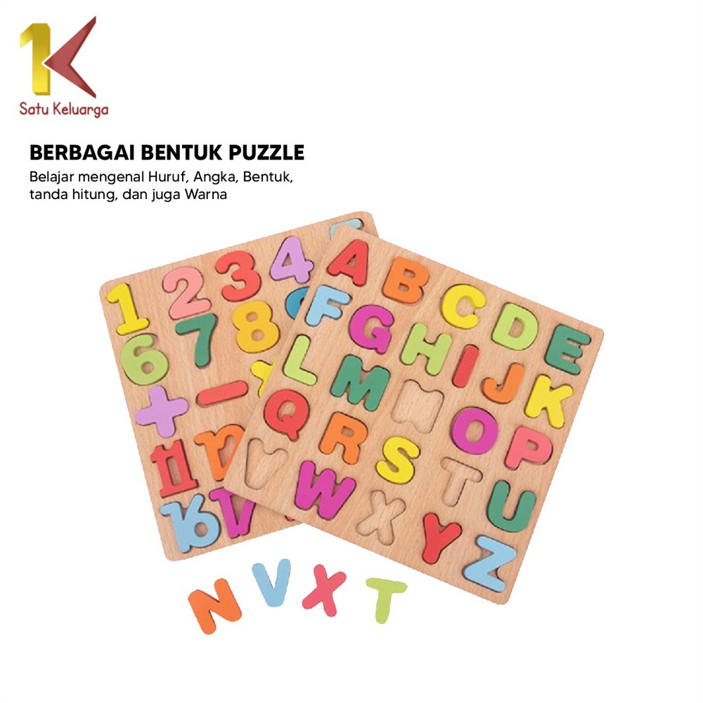 DP 0 Satu Keluarga Mainan Edukasi Anak Puzzle Kayu 3D M313 Mainan Kayu Anak Huruf Angka dan Bangun Datar Wooden Toys ABC Ki
