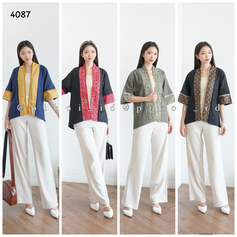 Cardigan Batik Wanita Modern Katun Linen Polosan Outer Etnik Wanita Simple Lengan Panjang 241 Caro