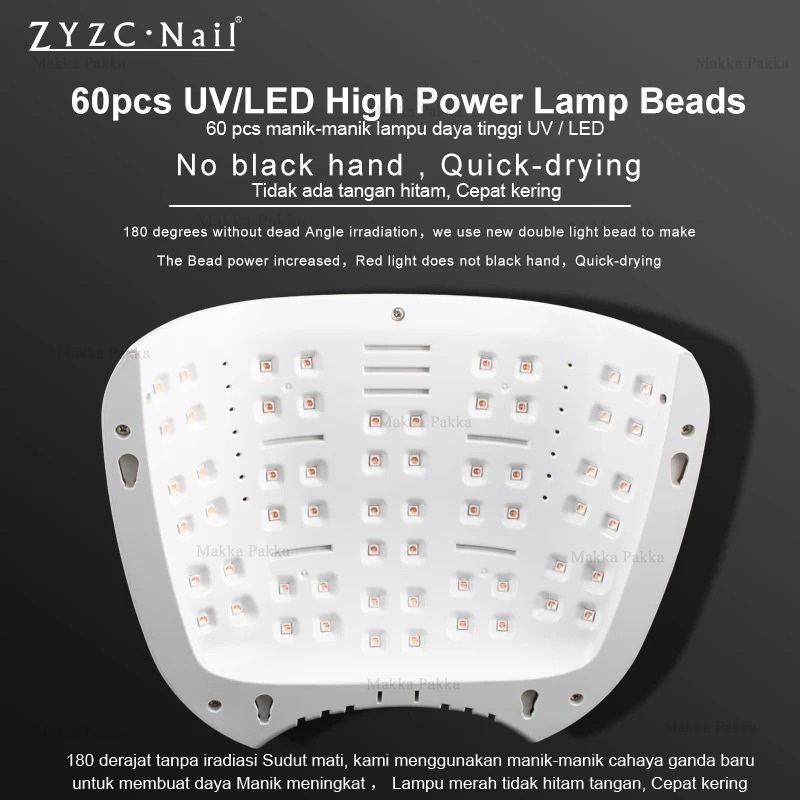 Zyzc L-Intelligent 180W 60Pcs Led Lamp 2 Handed Uv Lamp Pengering Kutek Gel Nail Uv Dryer Lampu Led 180W 60 Pcs 2 Lampu