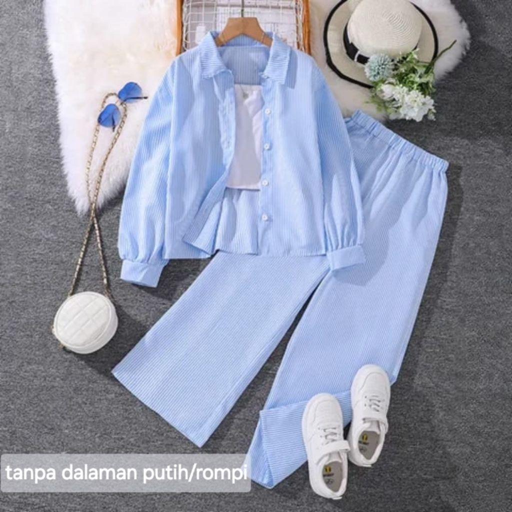 Setelan Anak Perempuan 1-12 Tahun Motif Salur Baju One Set Anak Cewek Bahan Cotton Premium Kemeja Model Korean Style Ter