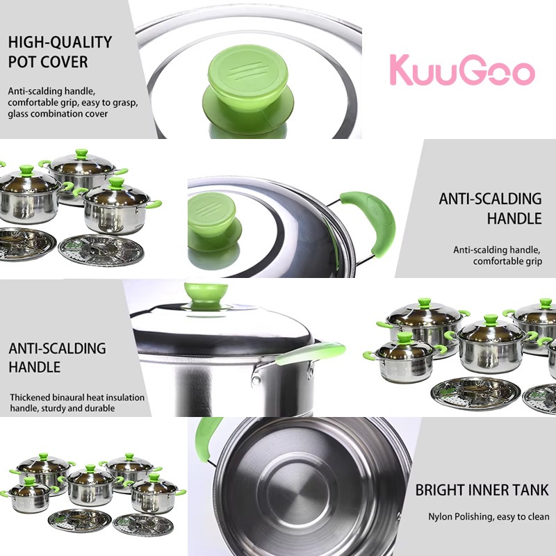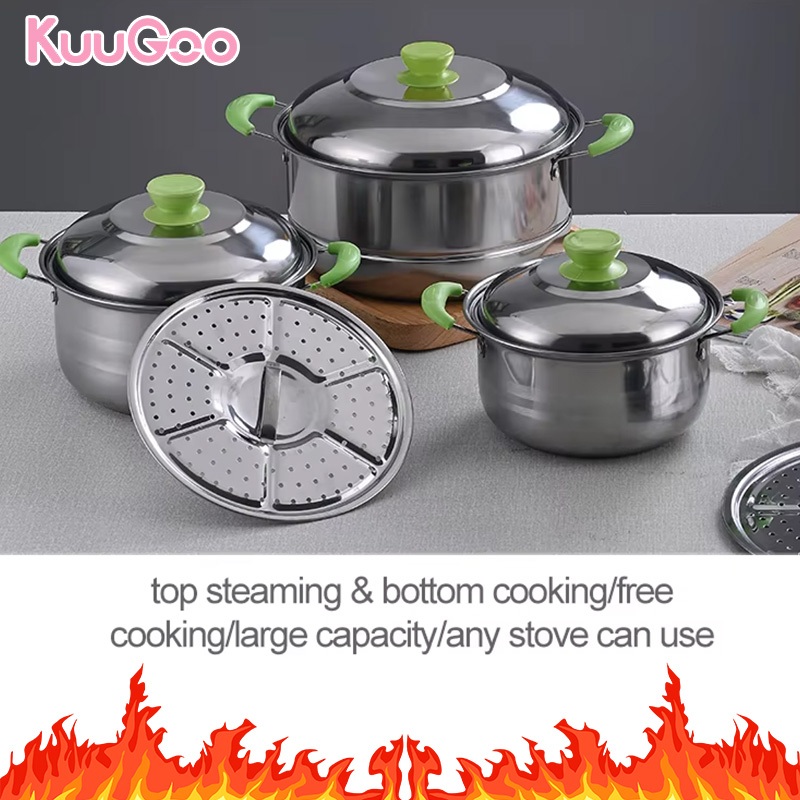 KUUGOO 12in1 upgraded Panci Steamer Set Stainless isi 5 pcs + 2pcs Kukusan