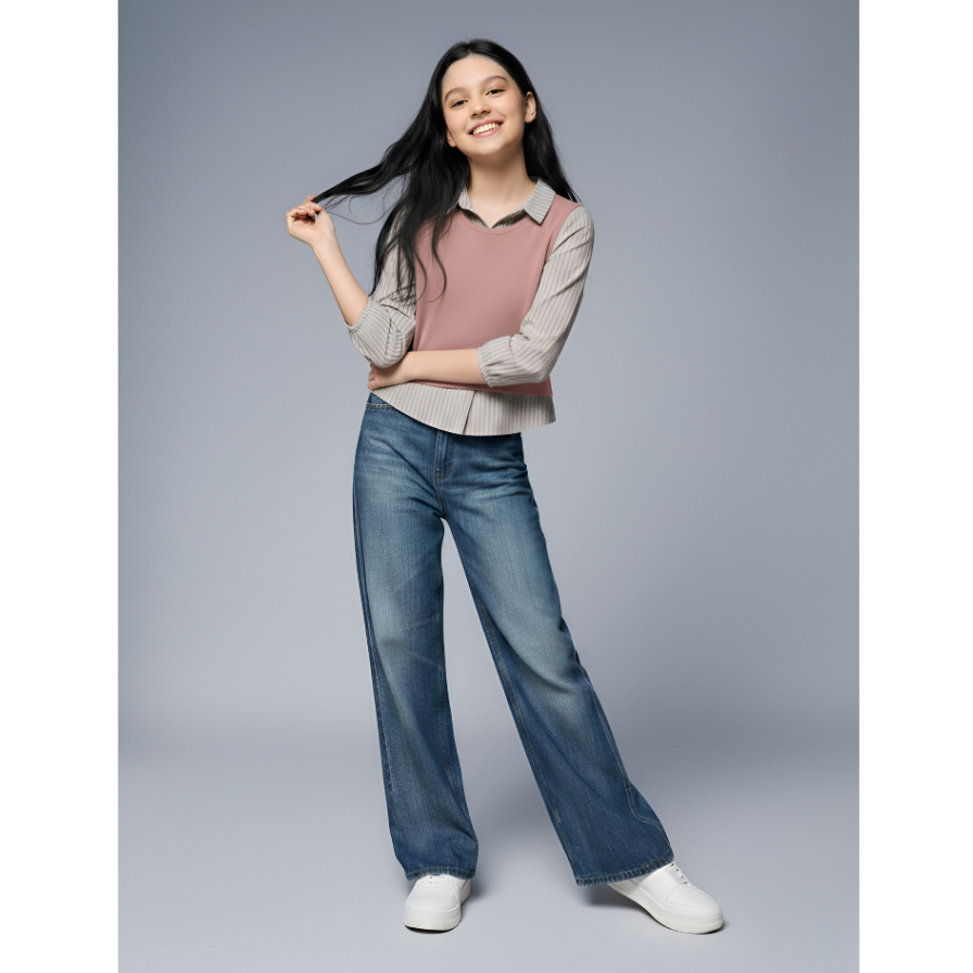 Kemeja Alifa Atasan Anak Perempuan Usia 5 - 16 Tahun Bahan Knit Mix Katun Salur Premium - Terbaru