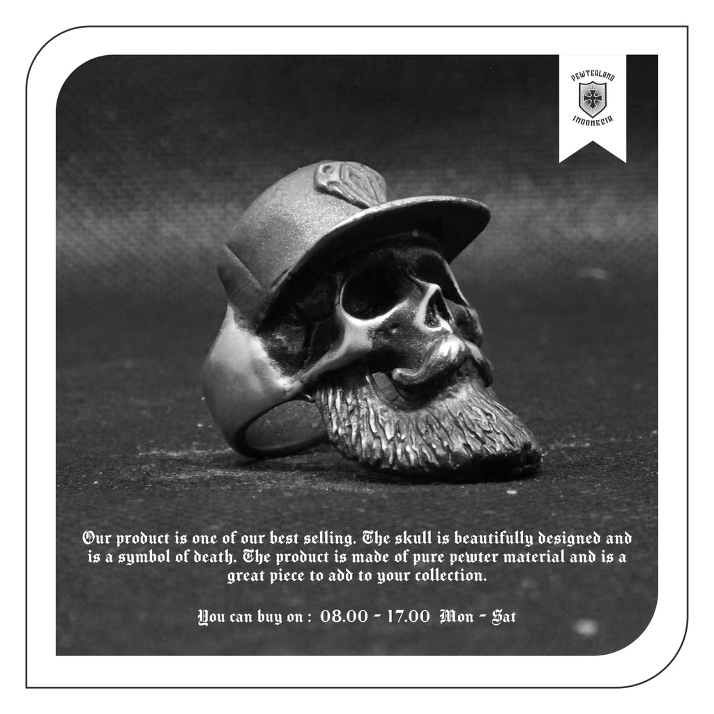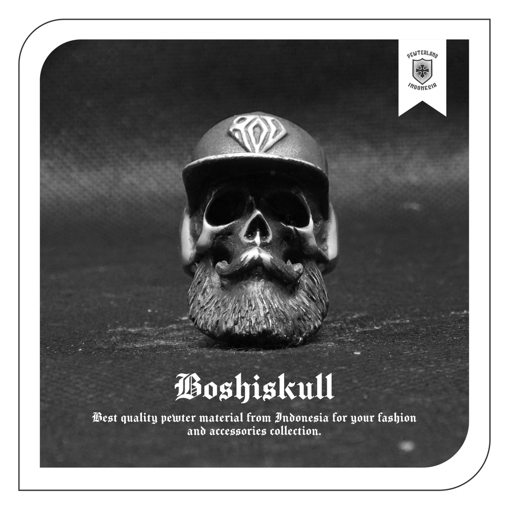 Pewterland Ringskull Boshiskull Bahan L064M Timah Pria dan Wanita