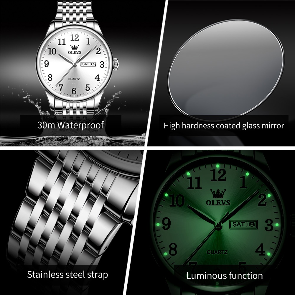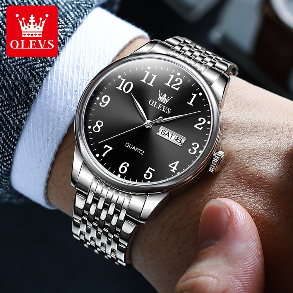 OLEVS Jam Tangan Pria Original Anti Air Cowok Rantai Stainless Steel Quartz Analog Arloji Kalender Bisnis Fashion Men Watches 5535