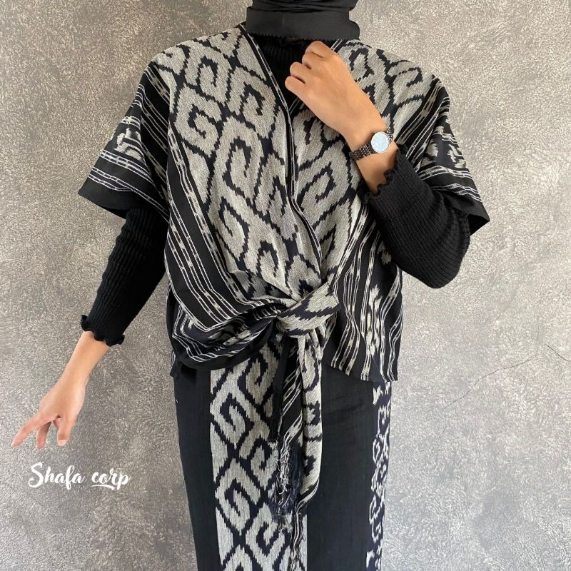 Atasan Baju Top Kardigan Outer Crop Tenun Etnik Batik Kondangan Wanita Anjani
