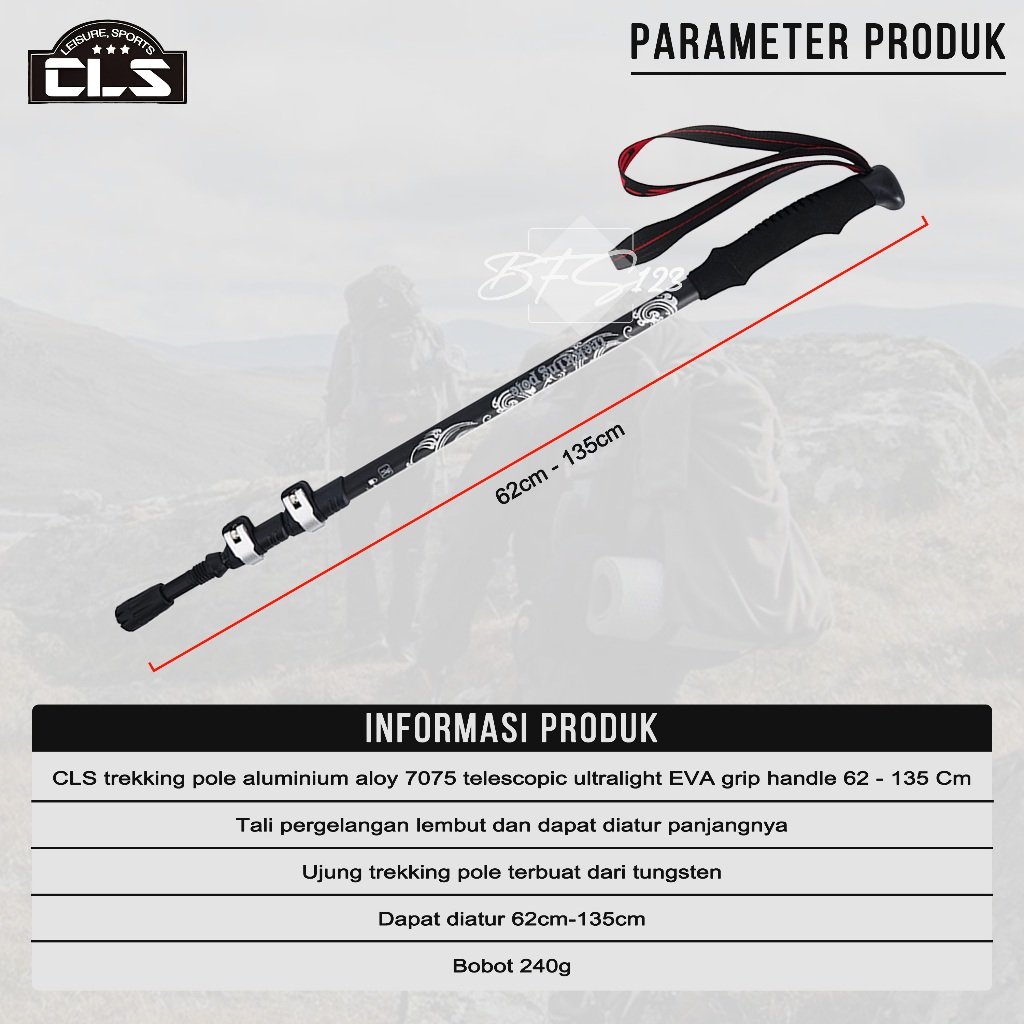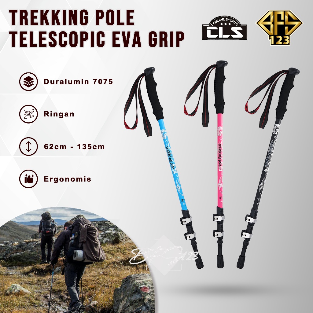 Cls Trekking Pole Aluminium Aloy 7075 Telescopic Ultralight Eva Grip Handle Size 62-135 Cm