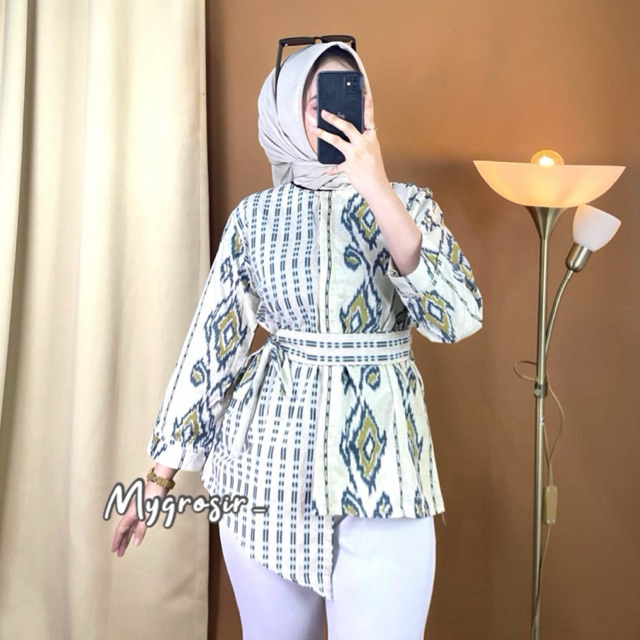 Baju Batik Wanita Modern Monalisa Genes M,L,Xl Asli Pekalongan Motif Etnik Asj Sa Hrb026 Kenongo Kemeja Tosca Pendek