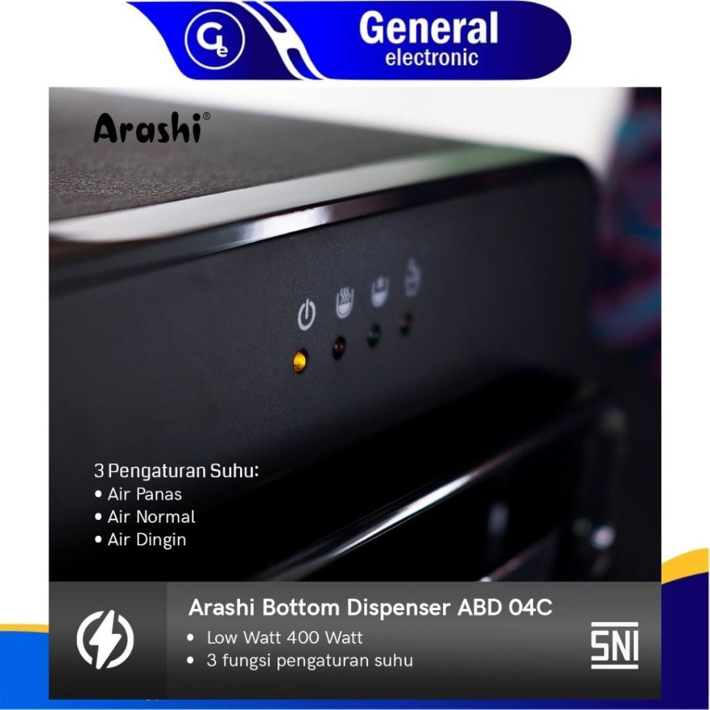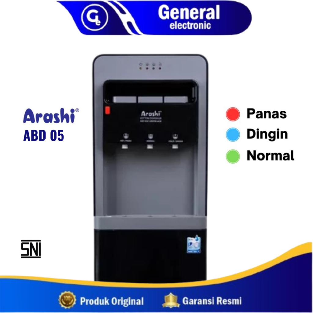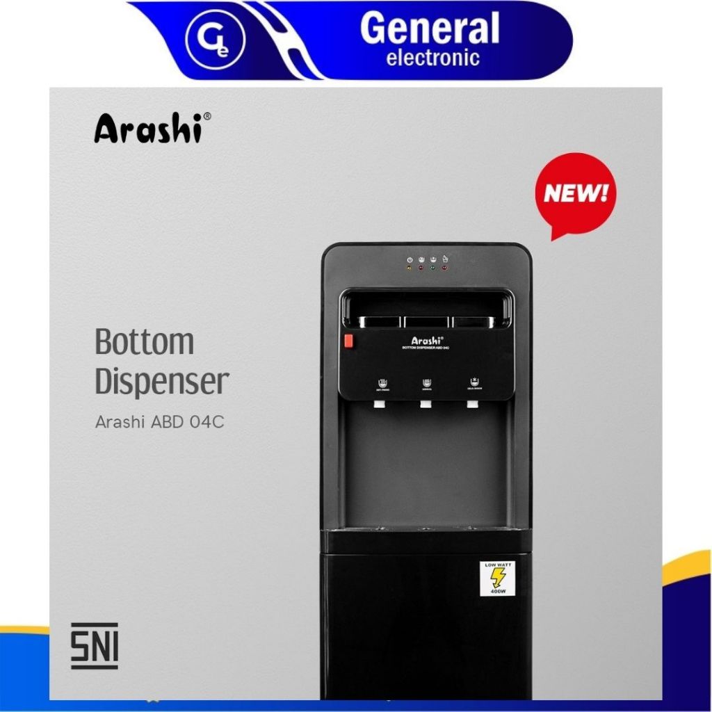 Dispenser Arashi Galon Bawah Digital ABD 04 Hitam - Fitur Panas Dingin Normal - 3 Kran