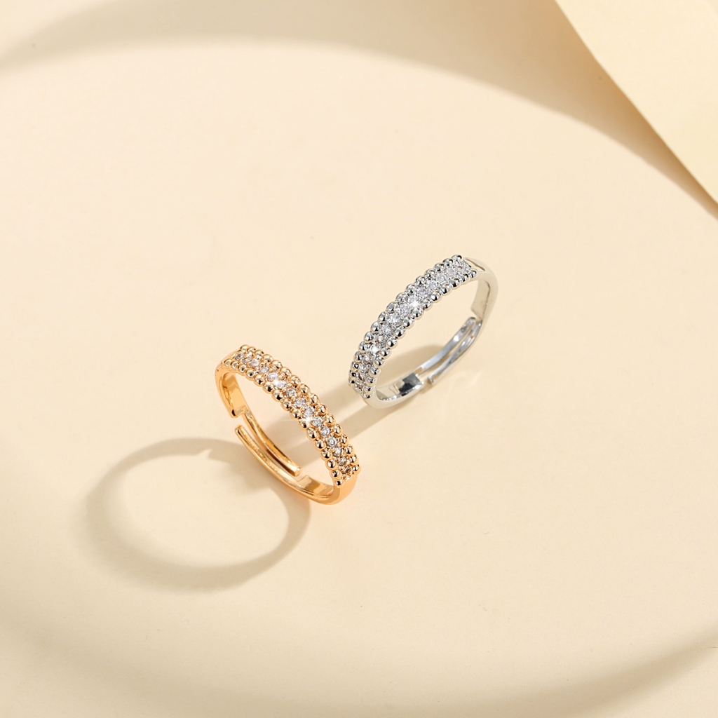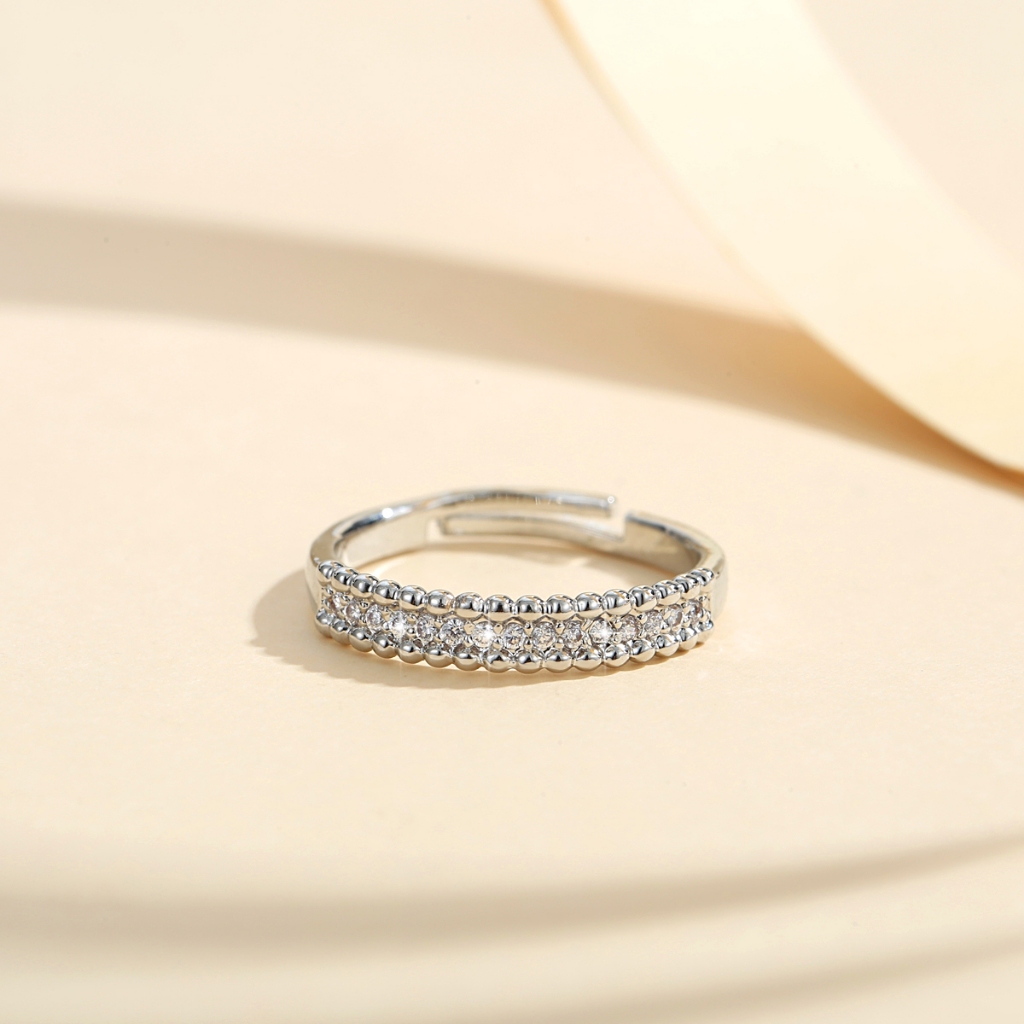 Lanme Jewelry Cincin Titanium Lapis 3M45 Berlian Wanita Fashion Perhiasan Kristal Terbuka Adjustable Rings LM281