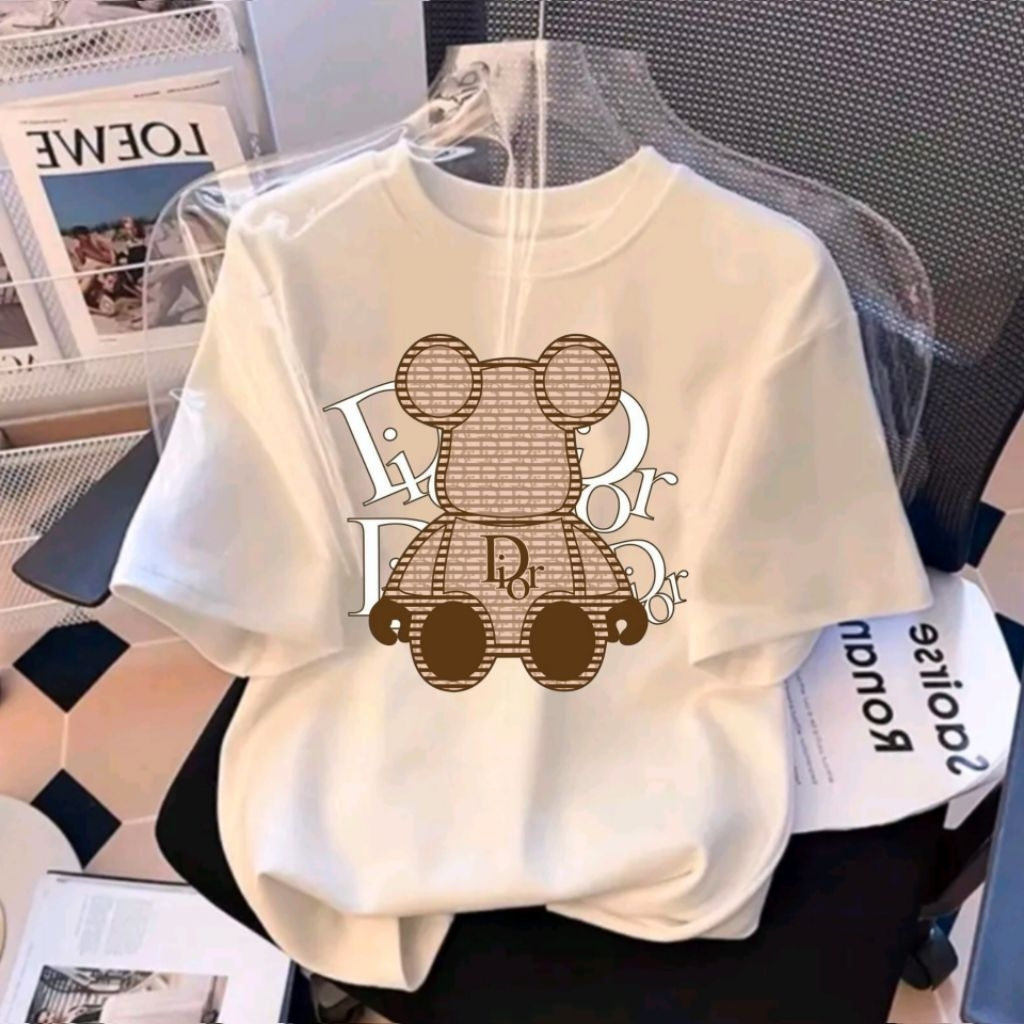 Kaos Oversize Anak Perempuan Usia 3-14 Tahun |Beruang Houndstooth Yang Lucu |Pakaian Anak Perempuan |Baju Kaos Anak Cewe
