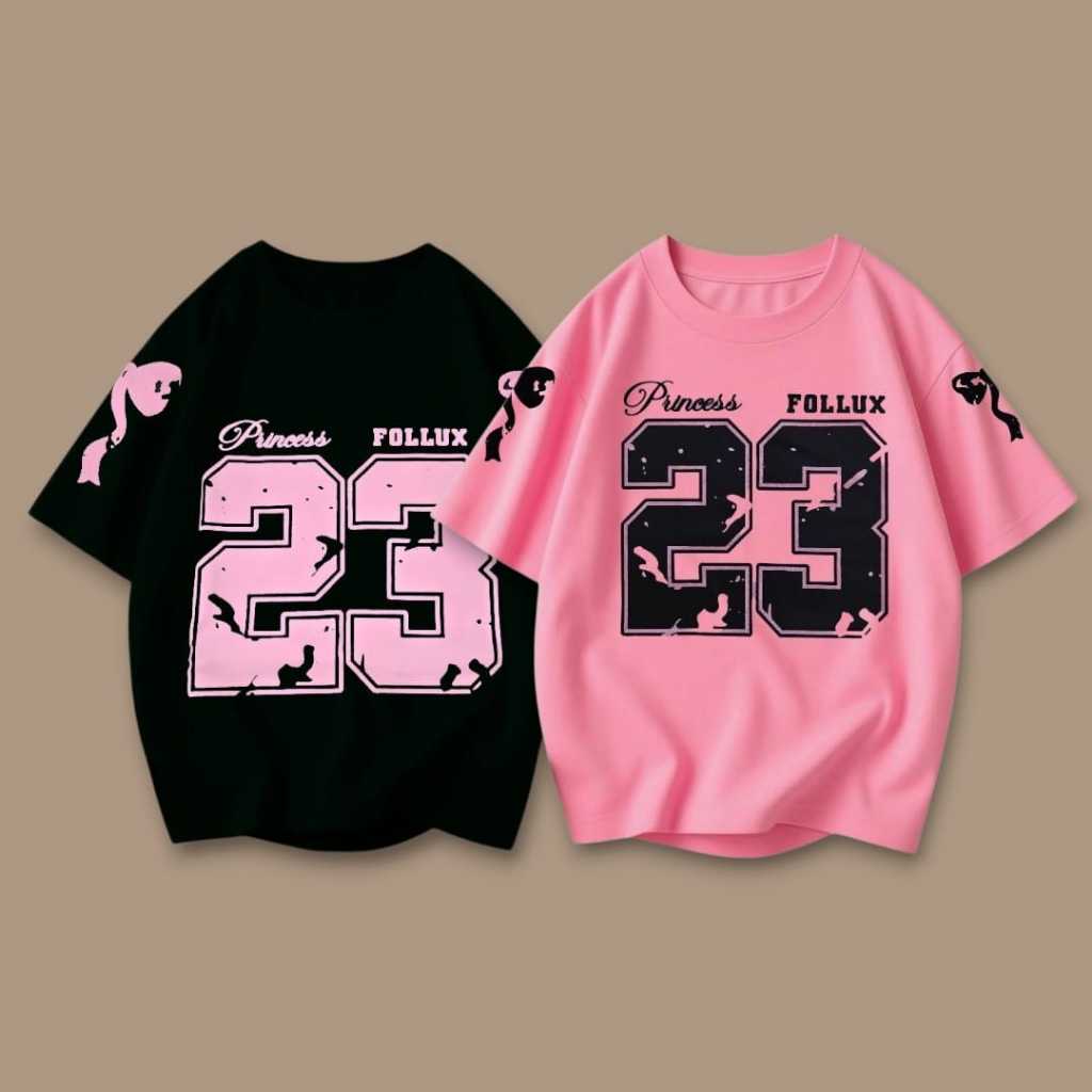 Follux - Atasan Kaos Anak Perempuan Over Size Black Pink Cotton Combed 30S