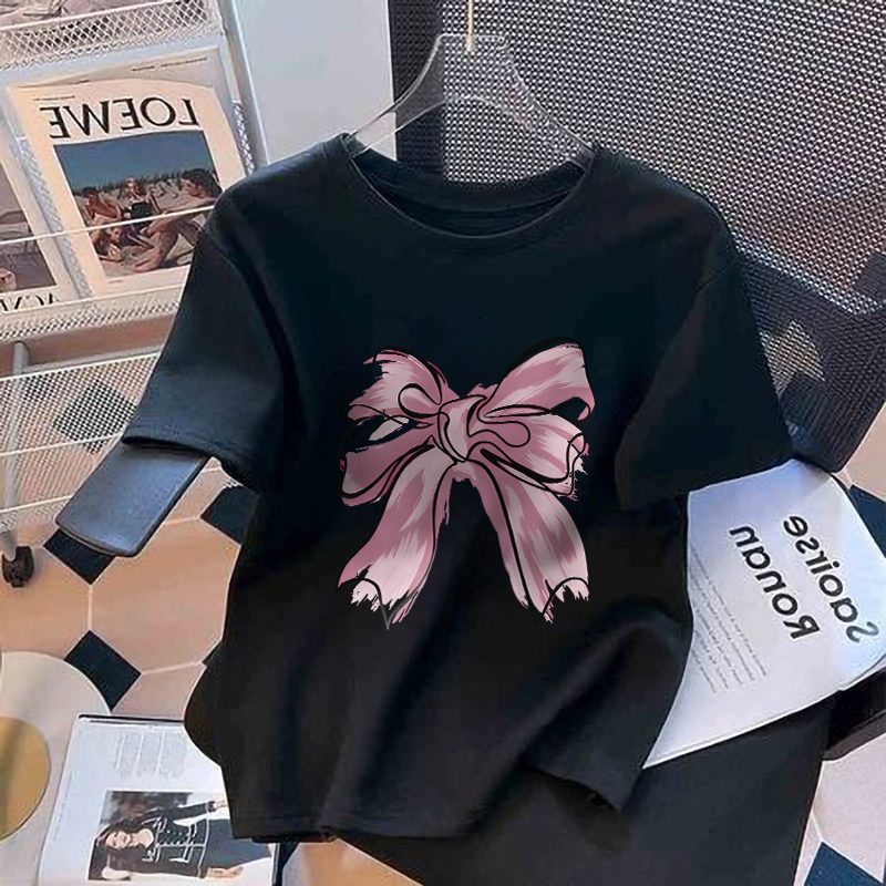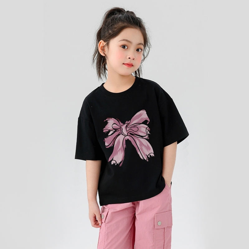 Laozy 2-12 Tahun Pink Peach Kaos Anak Perempuan Cewek 10 Tahun Baju Kaos Anak Cute Pink Bow Print T-Shirt Kaos Anak Rema