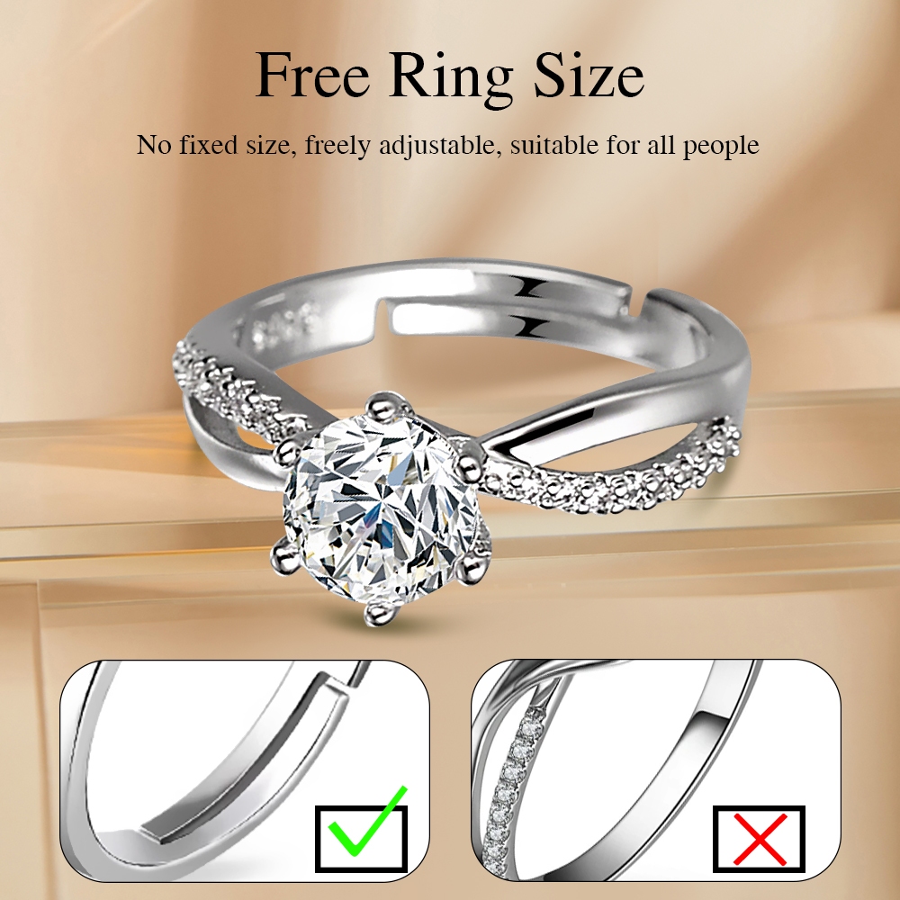 Chard Wake Original Cincin Wanita Couples Moissanite 2 Carat Adjustable Fashion Anti karat Aksesoris Sertifikat GRA Kota