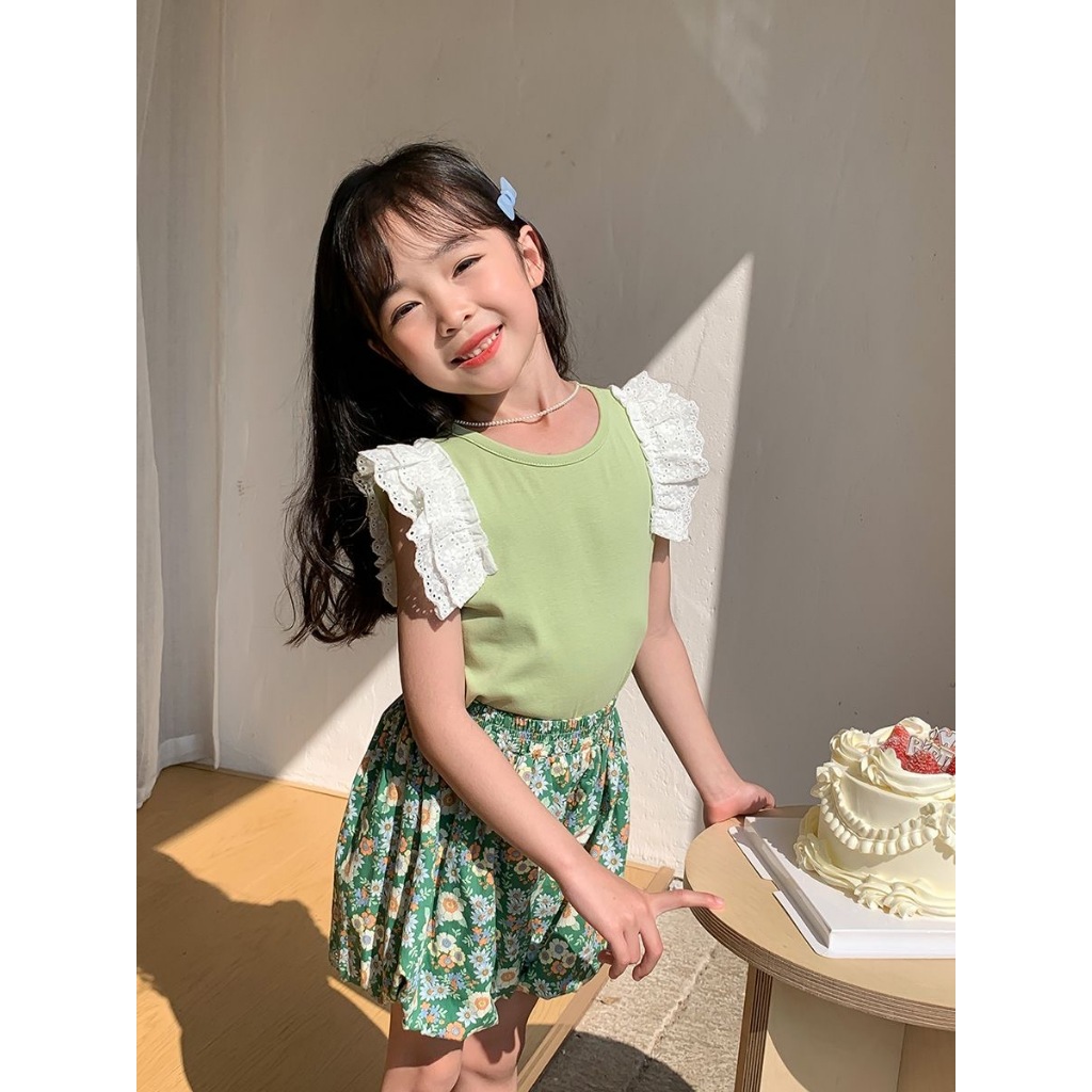 1-9 Tahun T-Shirt Berenda Gaya Baru 2025 Lengan Pendek Renda Bahan Katun Tipis Kaos Lucu