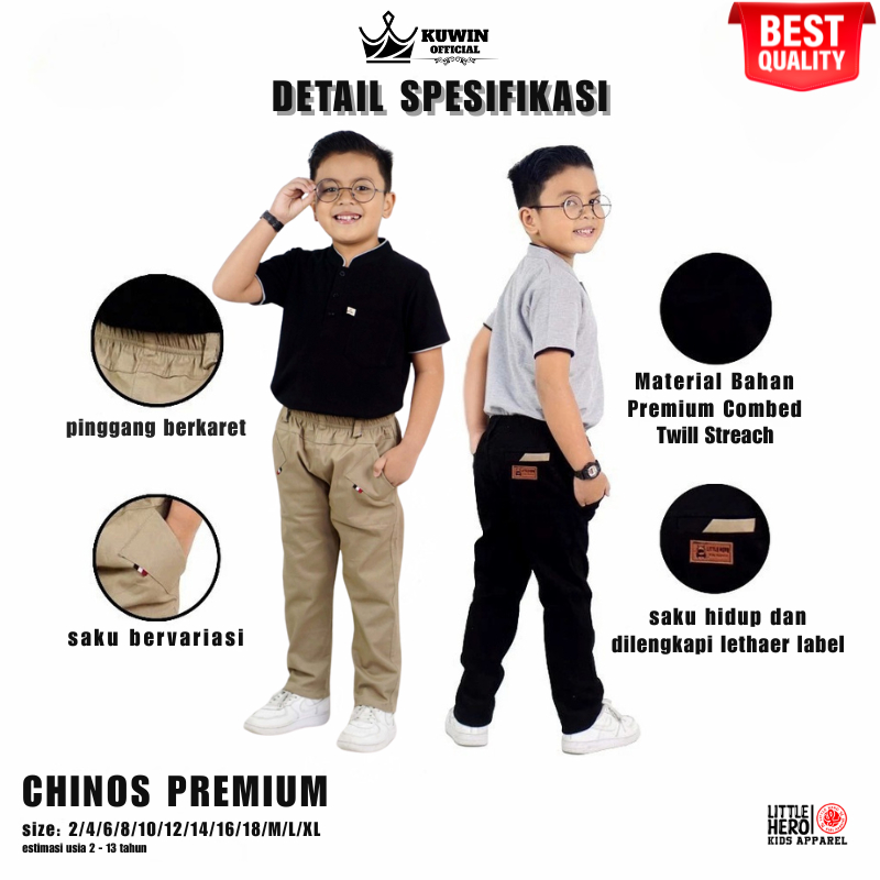 Celana Panjang Anak Chino Panjang Little Hero Anak Laki-Laki Estimasi 1-13 Tahun