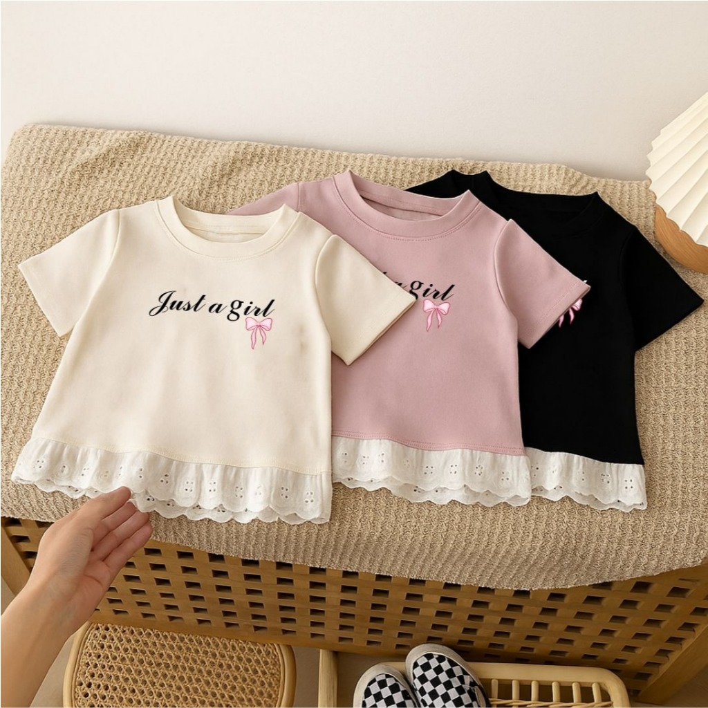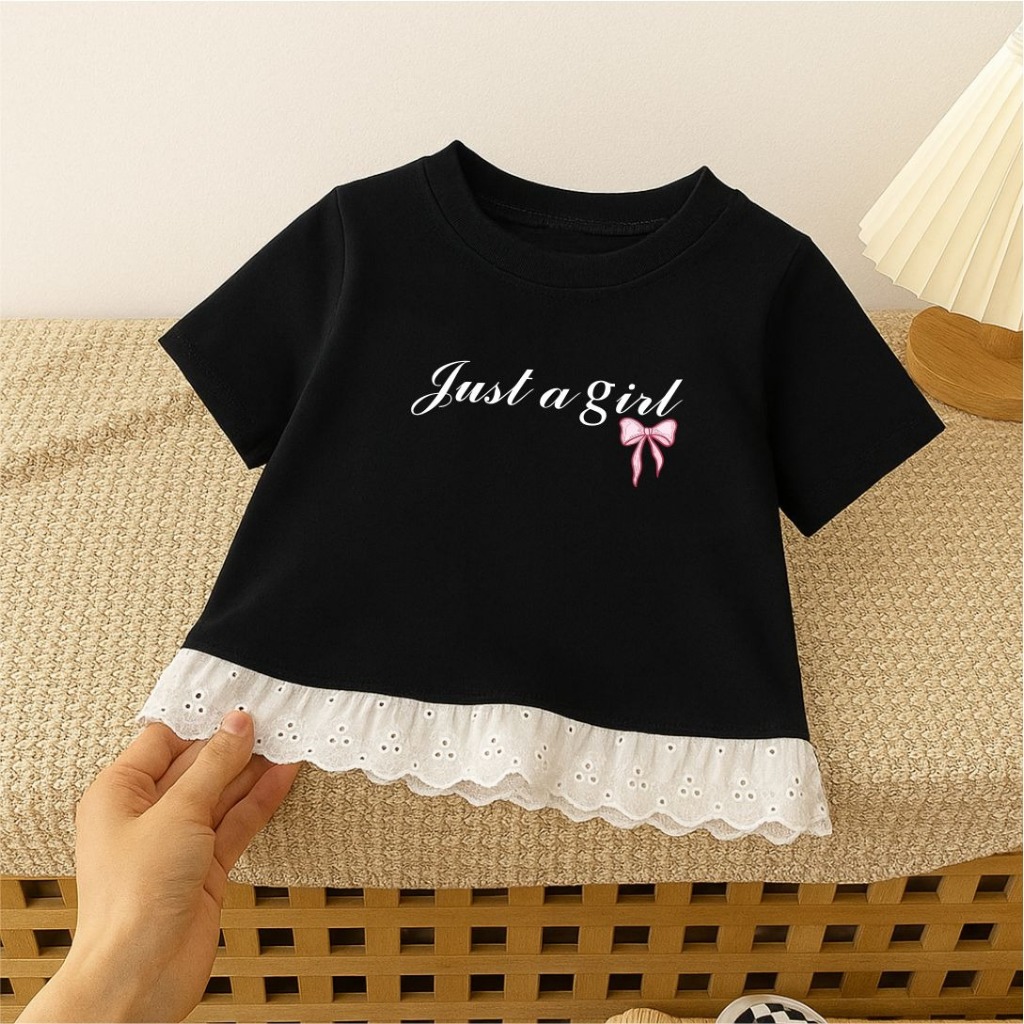 Kaos Anak Perempuan Lucu Model Renda Just A Girl 1-12 Tahun