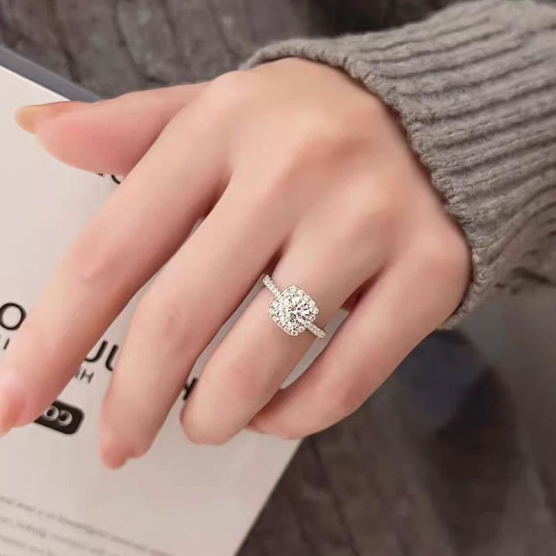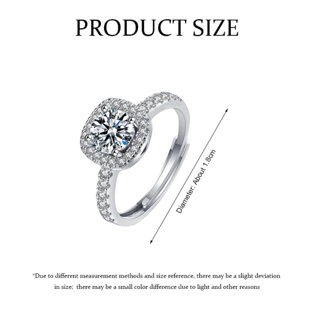 Cincin Titanium Anti Karat Empat Cakar Moissanite Wanita Adjustable Berlian Persegi Kelas Atas Terbuka Mewah Ringan-DS