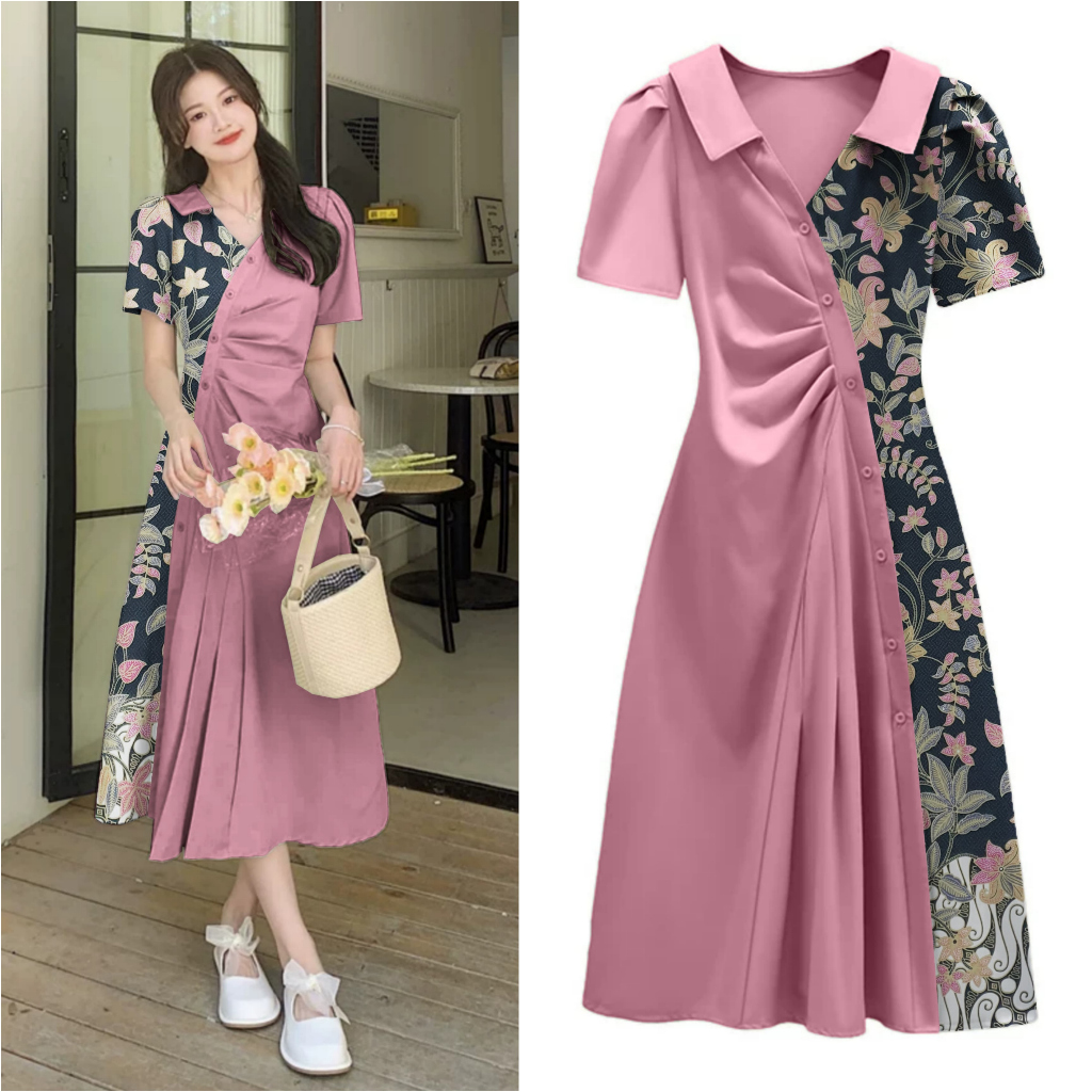 Fwg Dress Batik Wanita Kekinian Terbaru Pakaian Gaun Pesta Batik Motif Pakaian Dres Manela Kombinasi