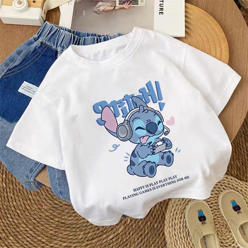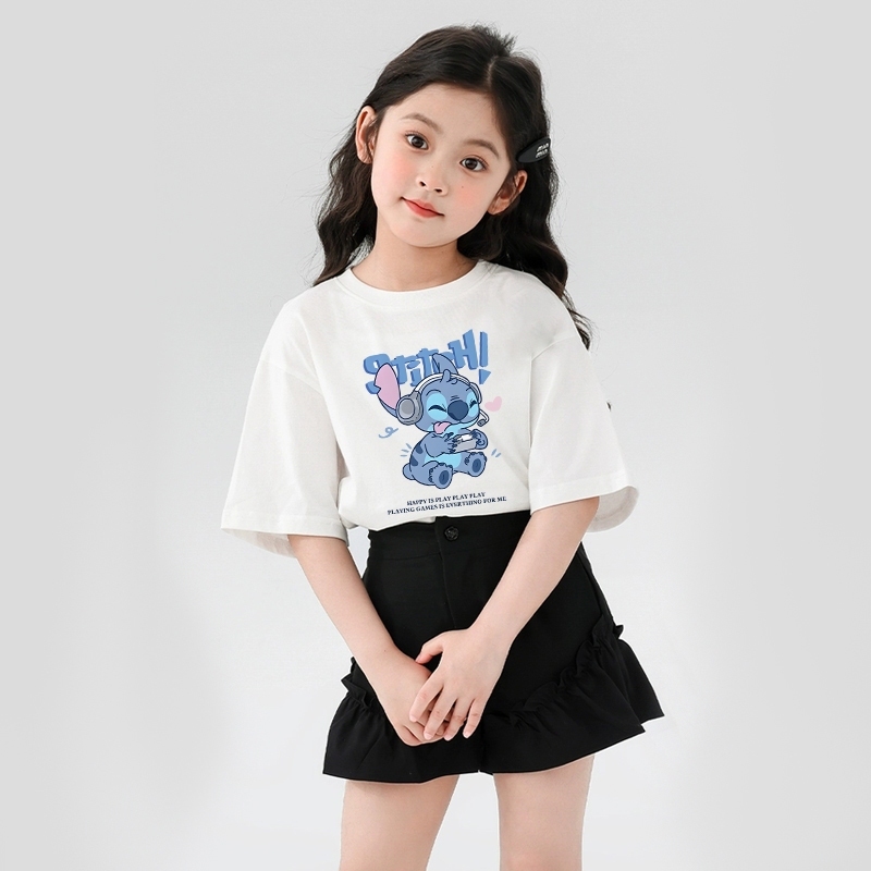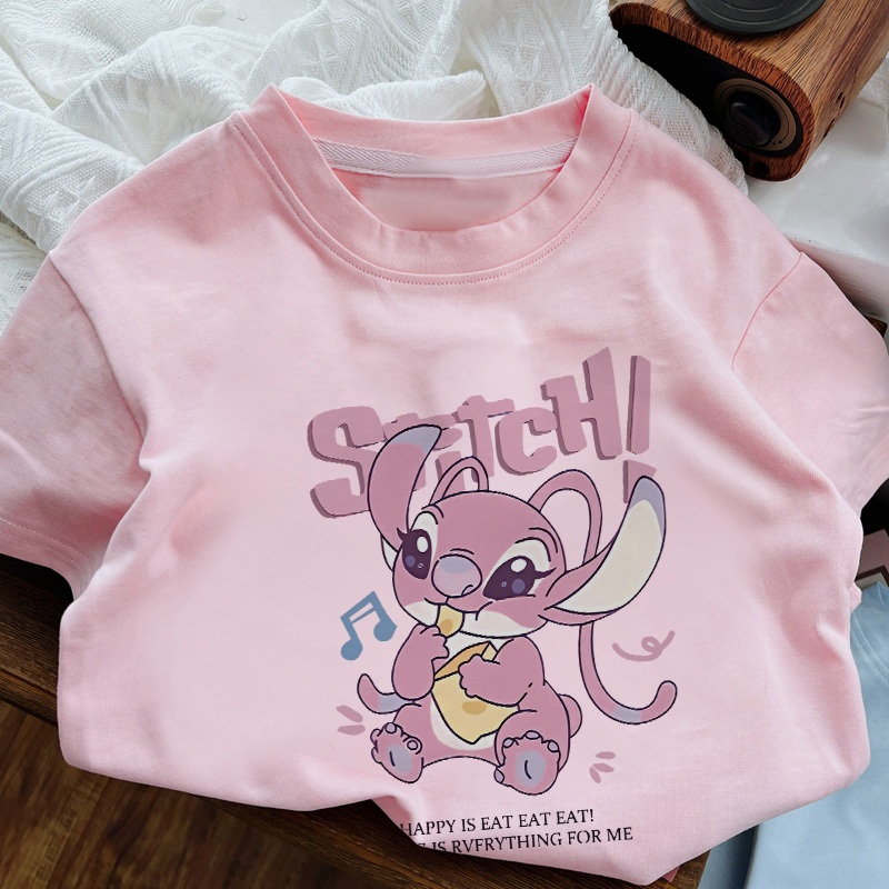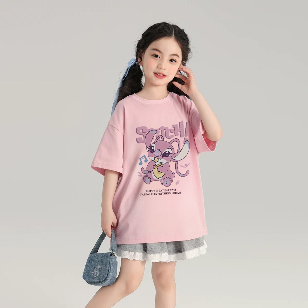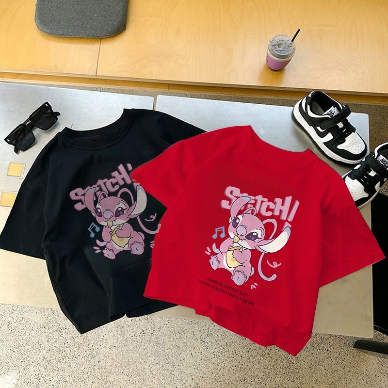 Dailyway Baju Kaos Atasan Perempuan T-Shirt Terbaru Import 2-12 Tahunbaju Kaos Anak-Anak Cetak Stitch Merah Muda Yang L