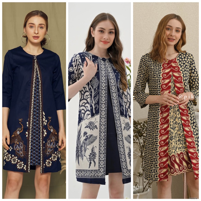 Dress Batik Wanita Modern Lengan Panjang Dress Layer Semi Outer Dress Batik Wanita 252 3000 3211